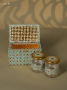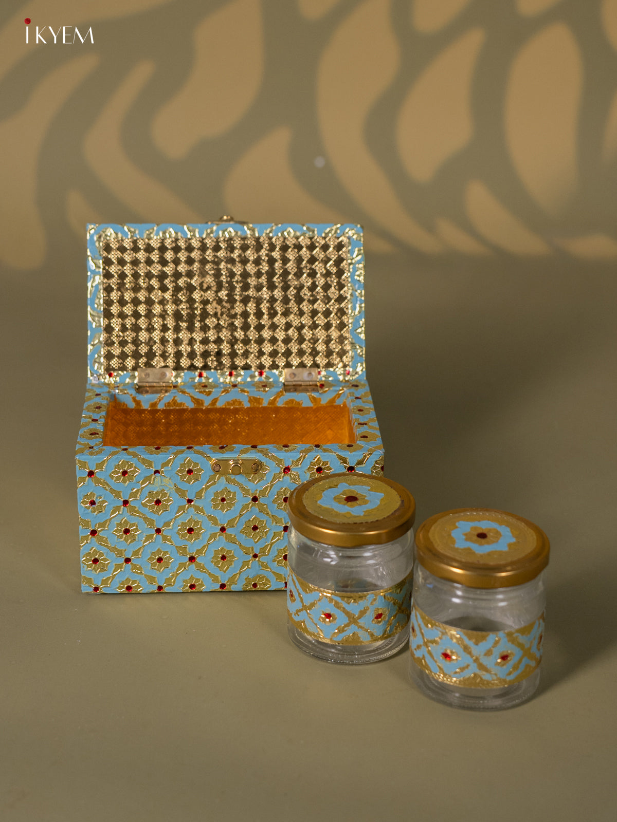 Meenakari Wooden Dry Fruit Box 2 Jar with Glass - Blue - KJ13139