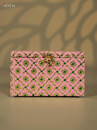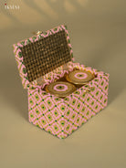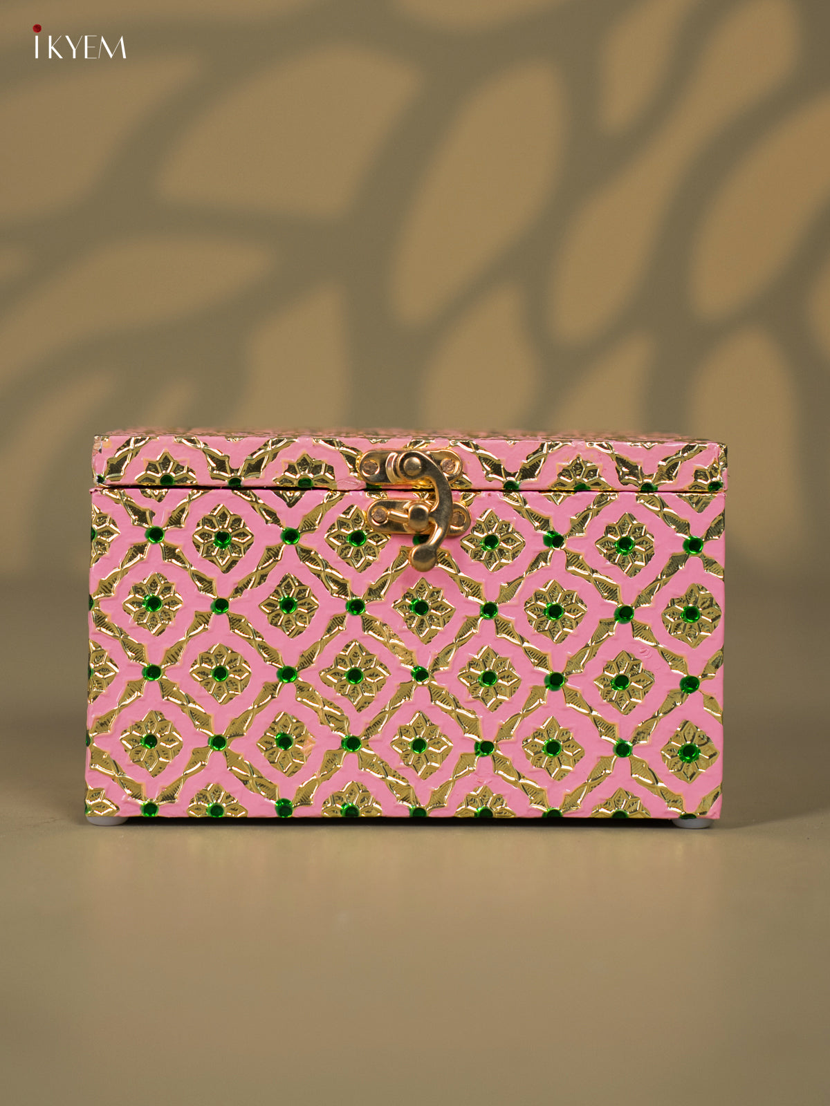 - Crafted with intricate Meenakari artistry and a sturdy wooden frame finished in elegant pink, this box combines beauty with functionality.