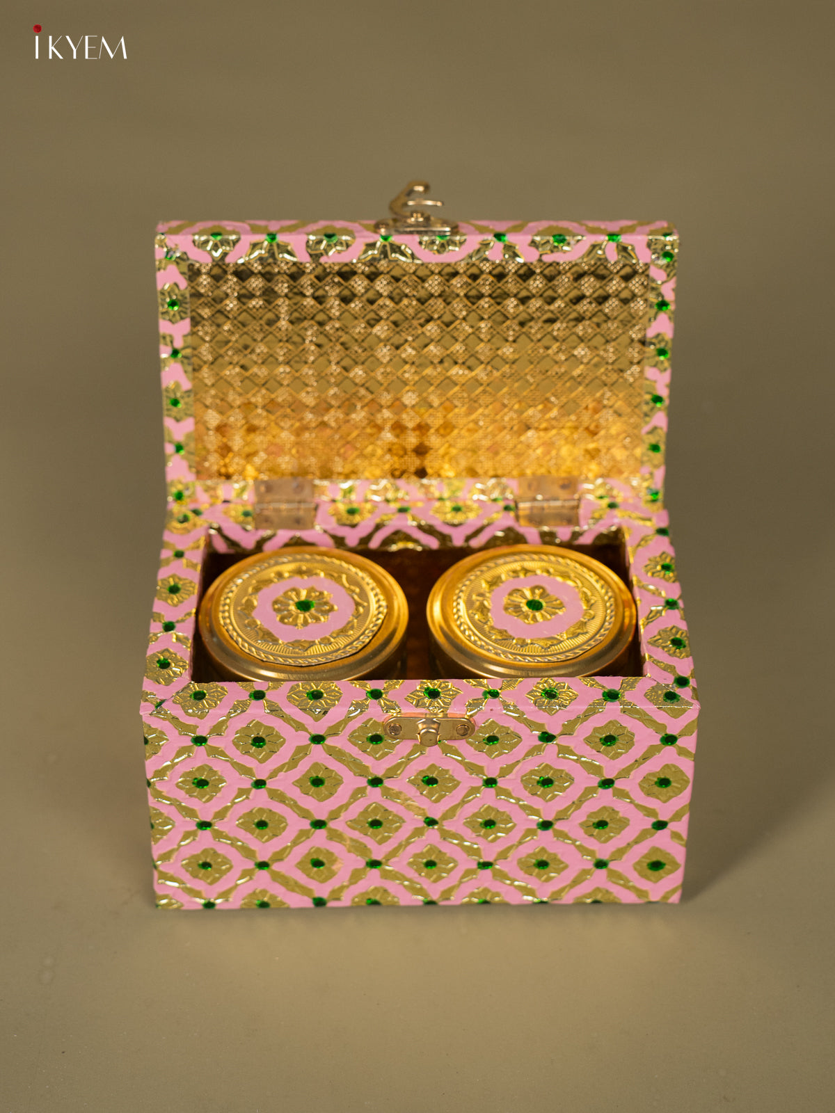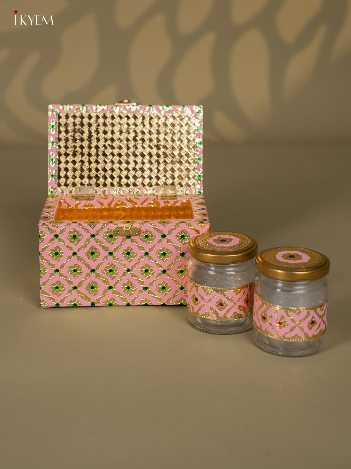 Meenakari Wooden Dry Fruit Box 2 Jar with Glass - Pink - KJ13140