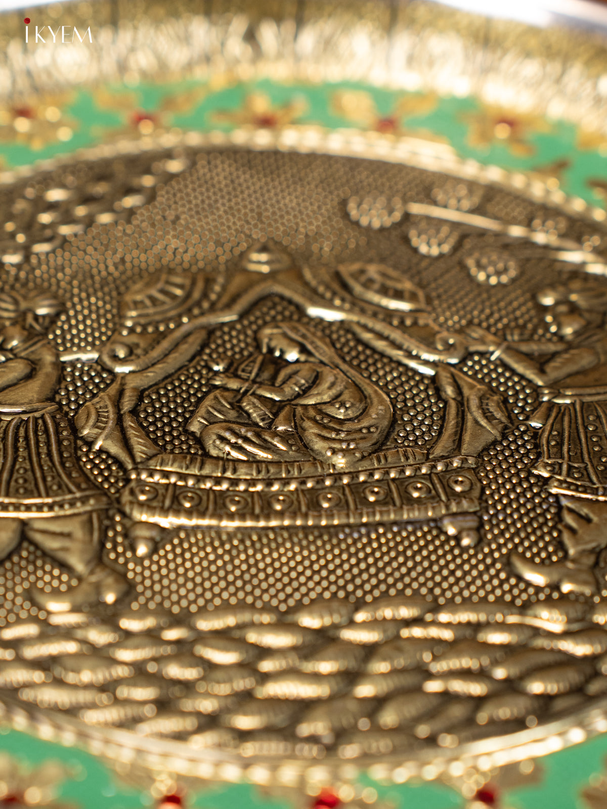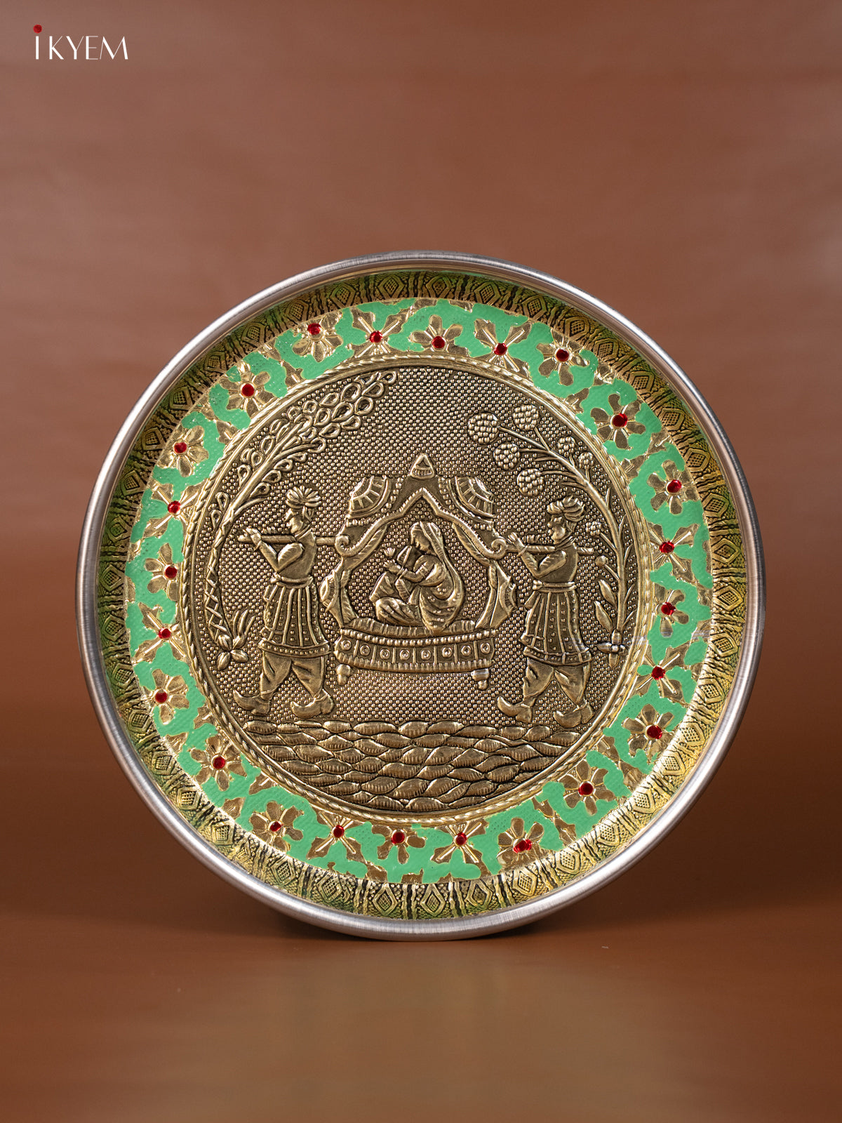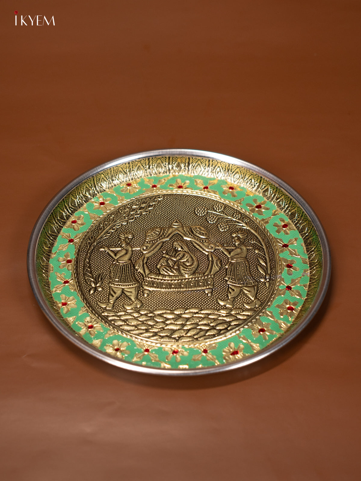 Green Meenakari Plate with Oxidized Pallakku Design - 8 Inches - KJ17112