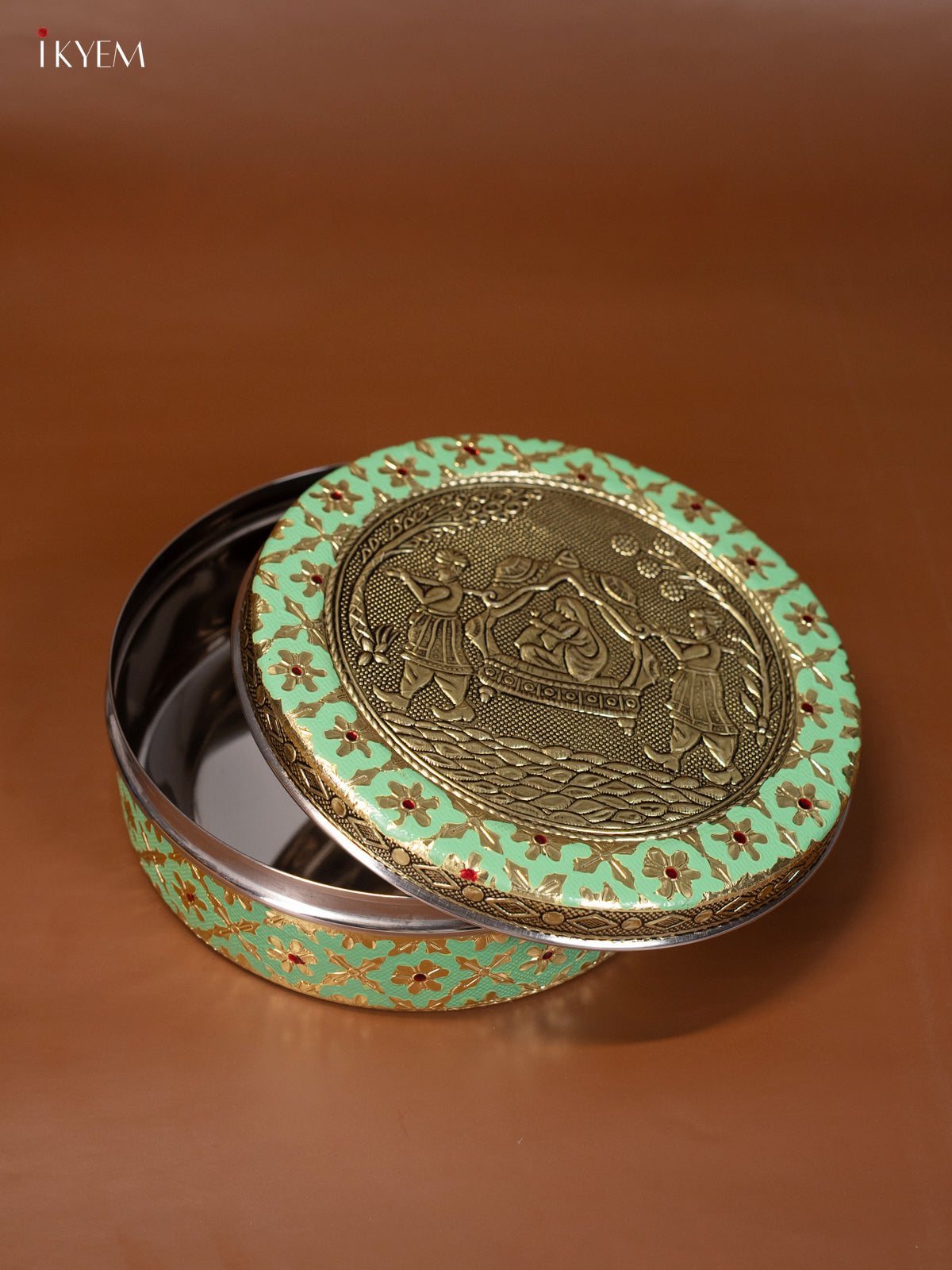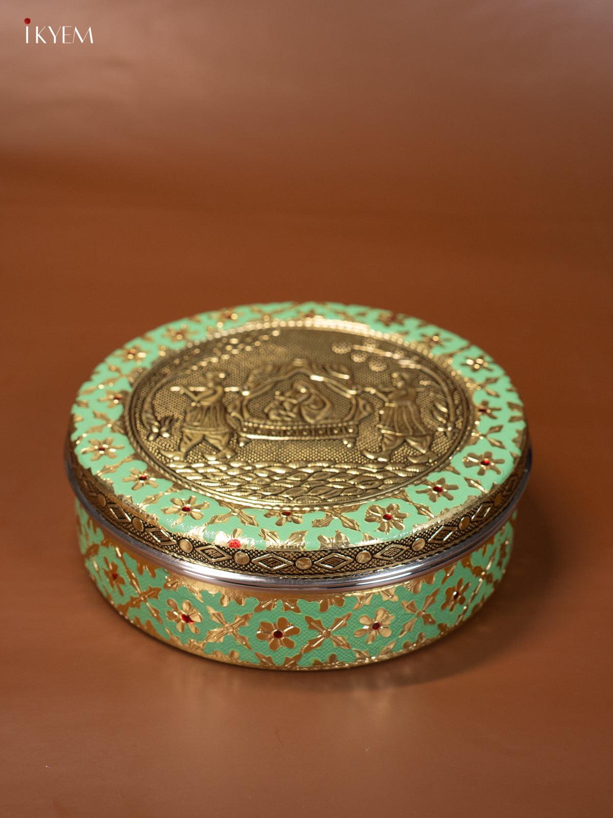 Pastal Green Meenakari Box with Oxidized Pallakku Design 7.5 Inches - KJ17114