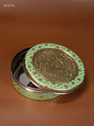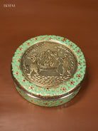 - This 7.5-inch Pastel Green Meenakari box showcases an elegant oxidized Pallakku design, combining traditional craftsmanship with functional appeal.