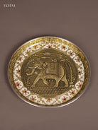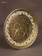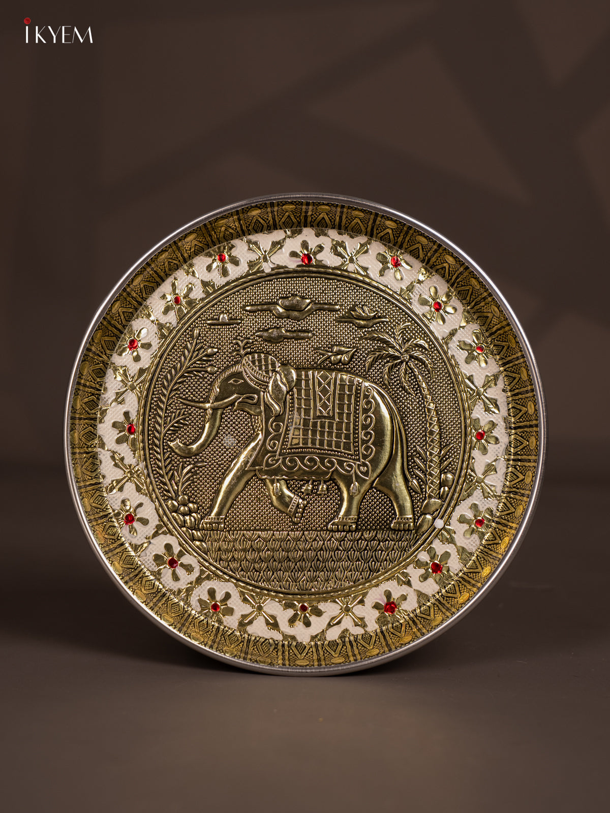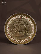 White Meenakari Plate with Oxidized Elephant Design - 8 Inches - KJ27121