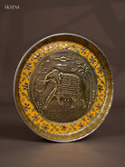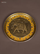 Yellow Meenakari Plate with Oxidized Elephant Design - 8 Inches - KJ27123