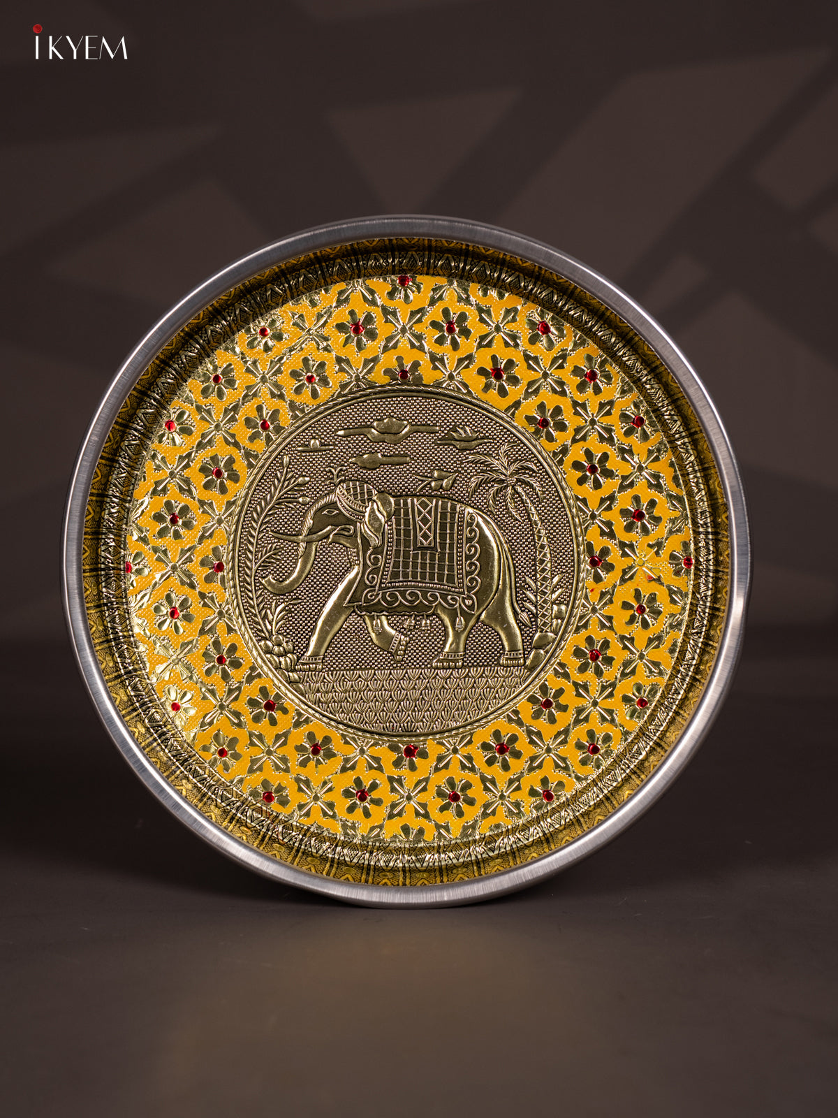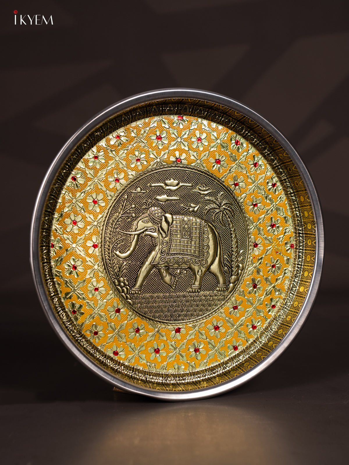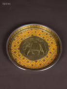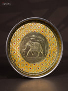 Yellow Meenakari Plate with Oxidized Elephant Design - 11 Inch - KJ27130