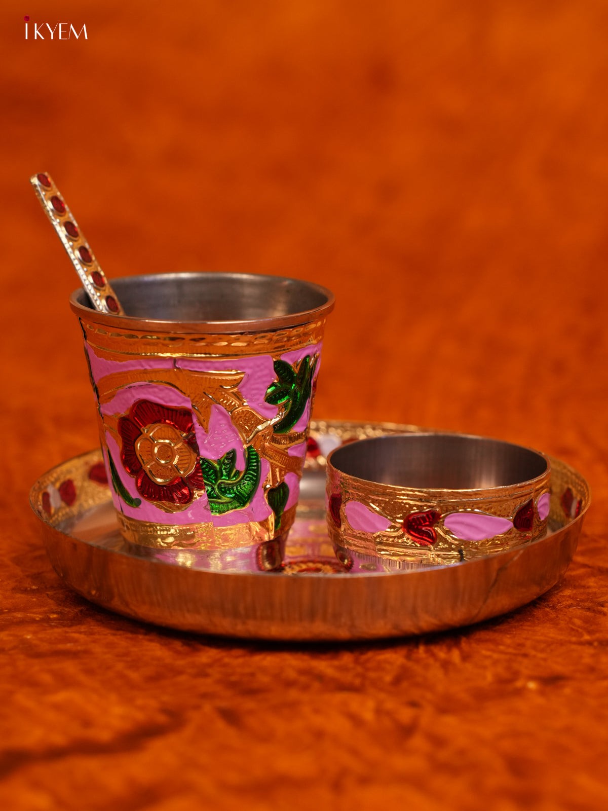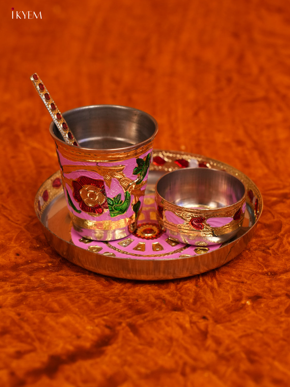 Meenakari Baby Thali Set 2 Inch- Pink - KL31122