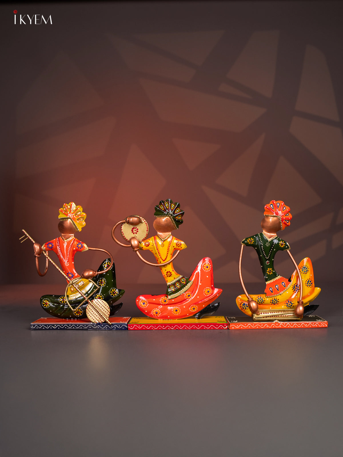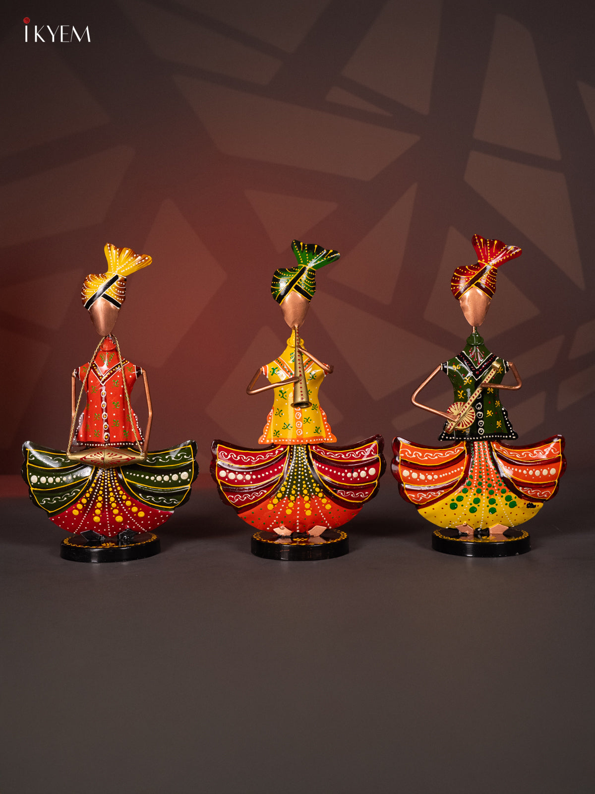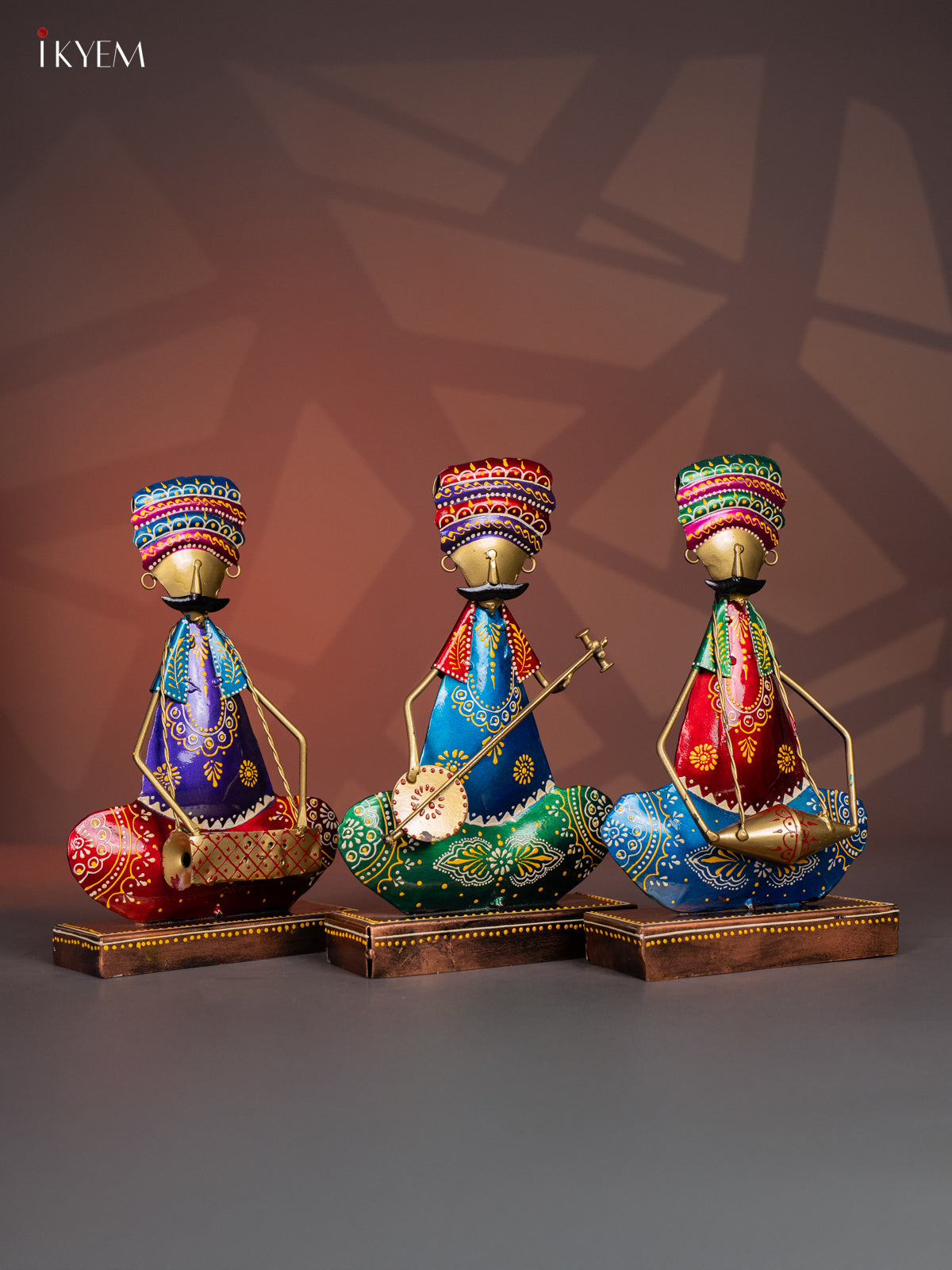 Metal Hand Painted Musician Rajasthani Set of 3 - 13 Inches - KI20112