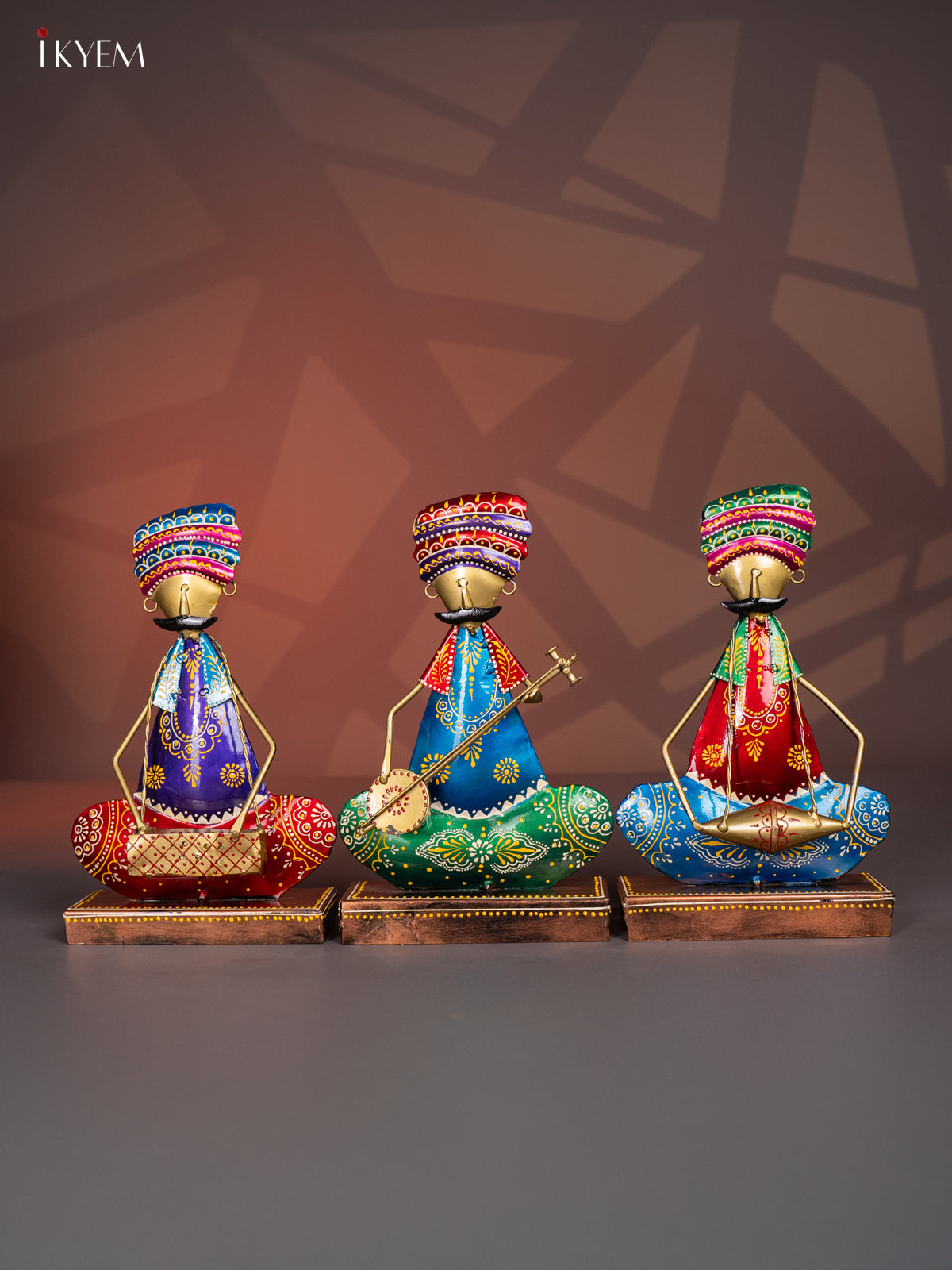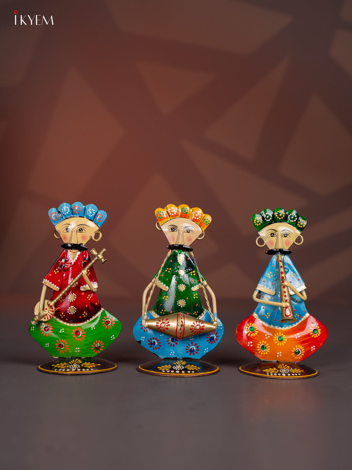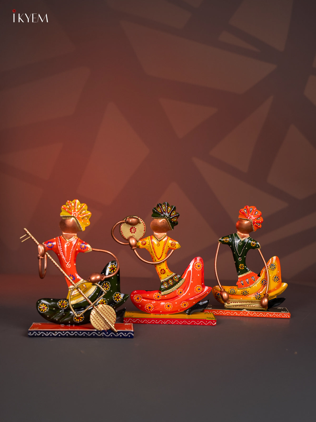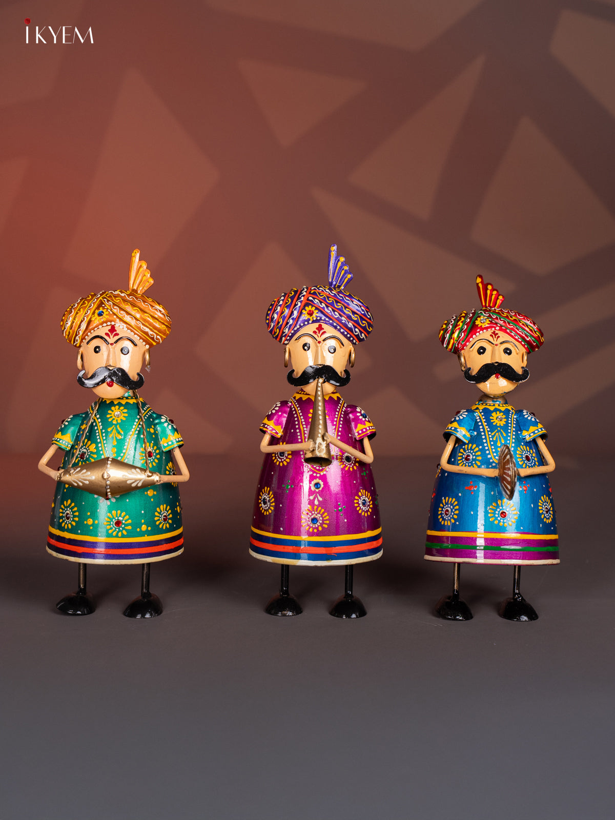 Metal Hand Painted Musician Rajasthani Set of 3 - 13 Inches - KI20112