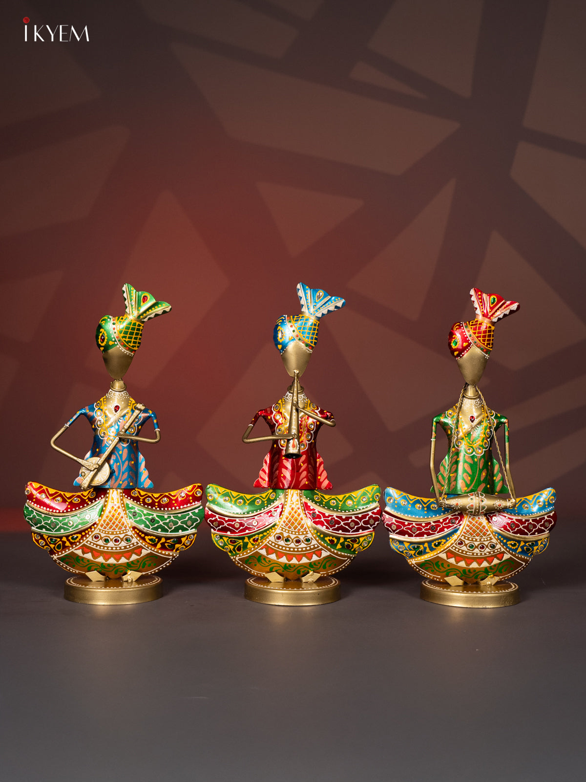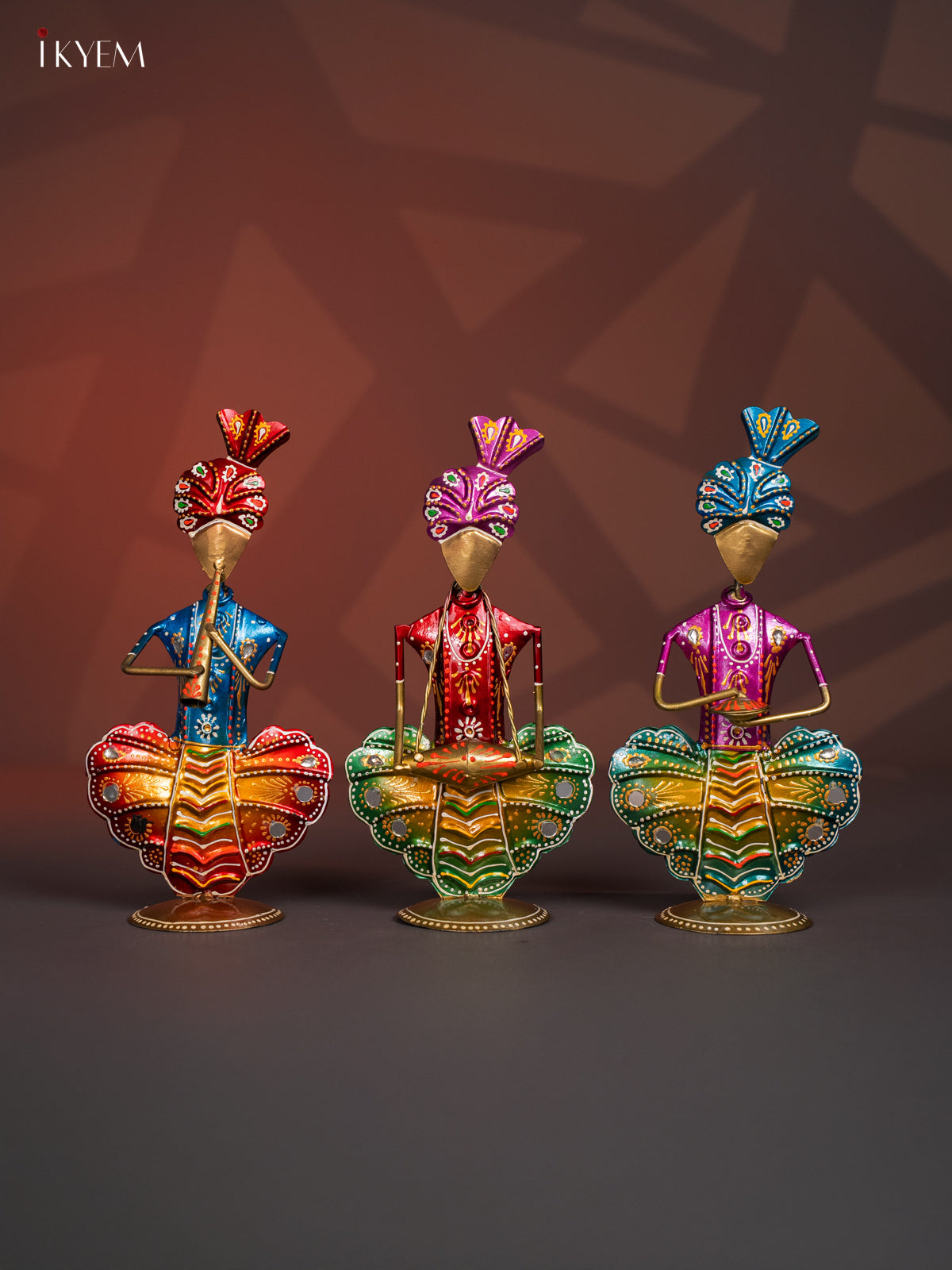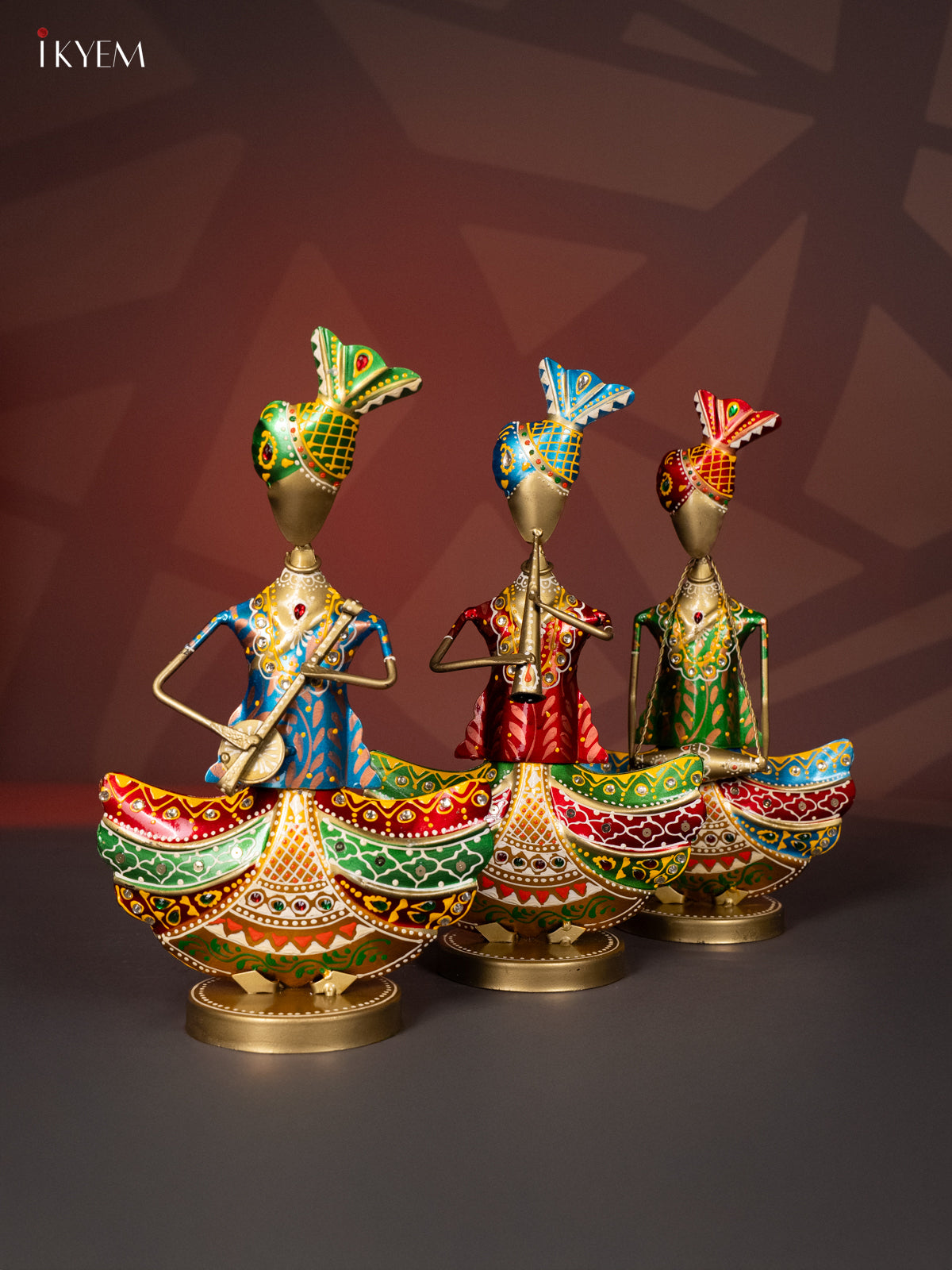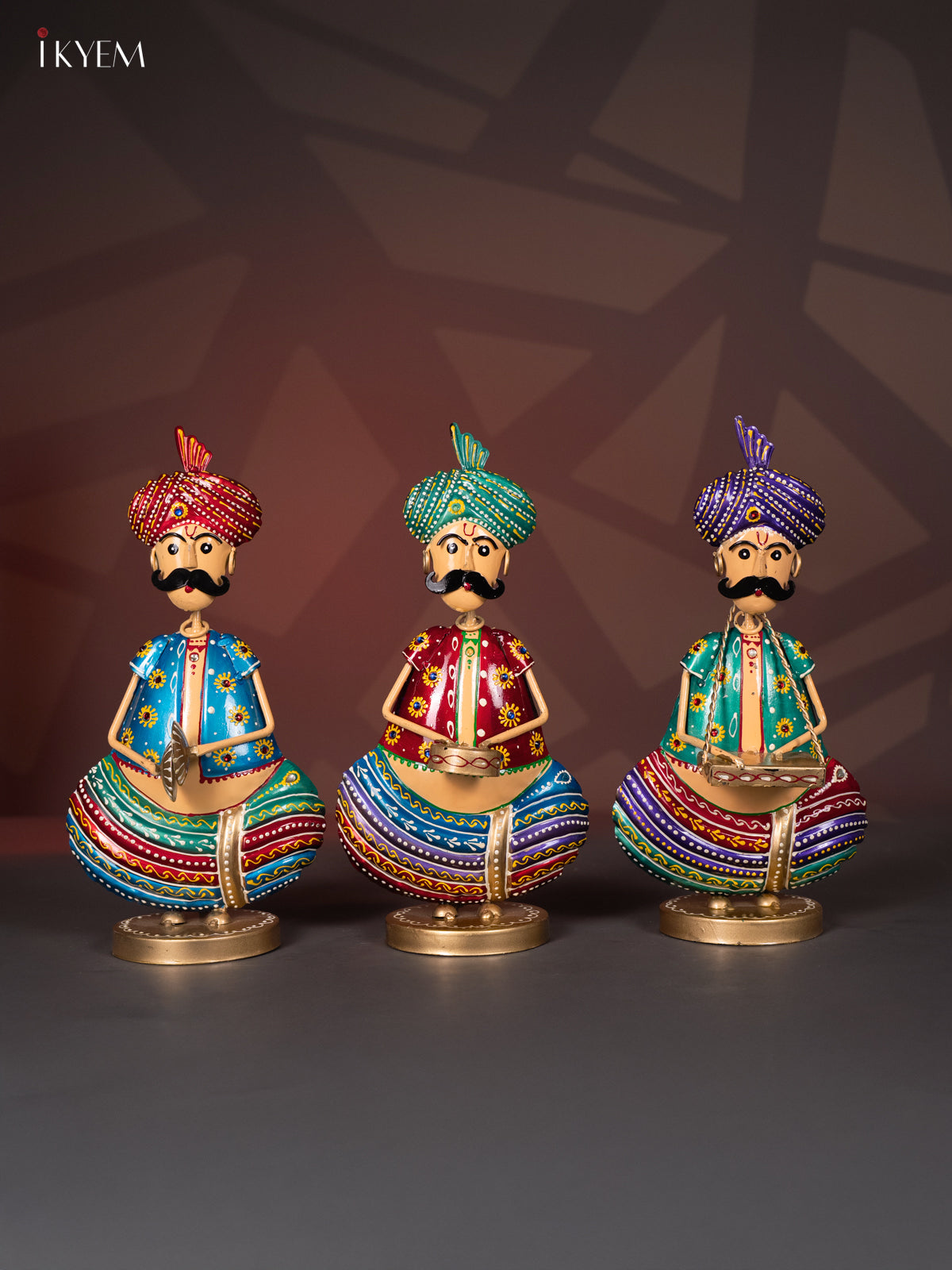 Metal Hand Painted Musician Rajasthani Set of 3 - 13 Inches - KI20111
