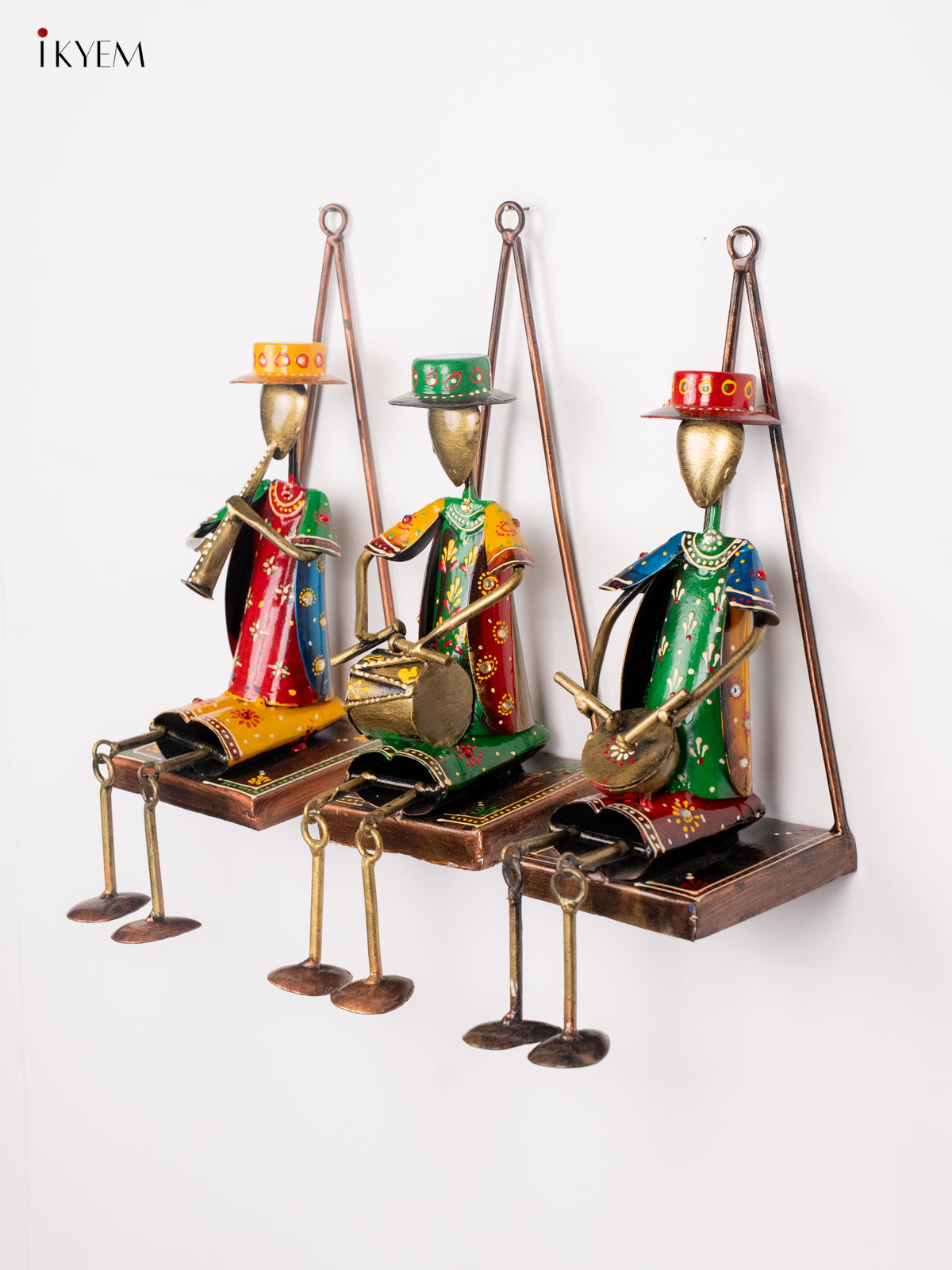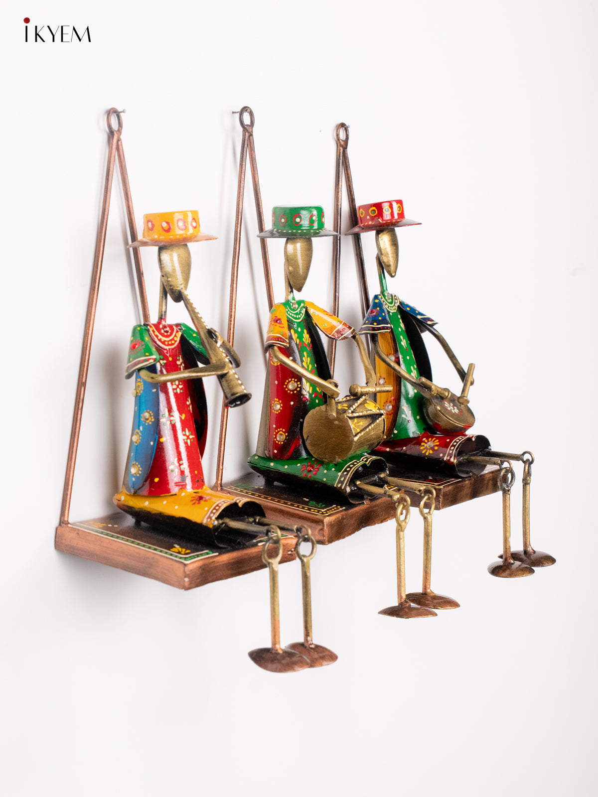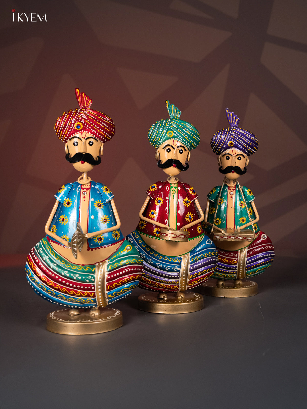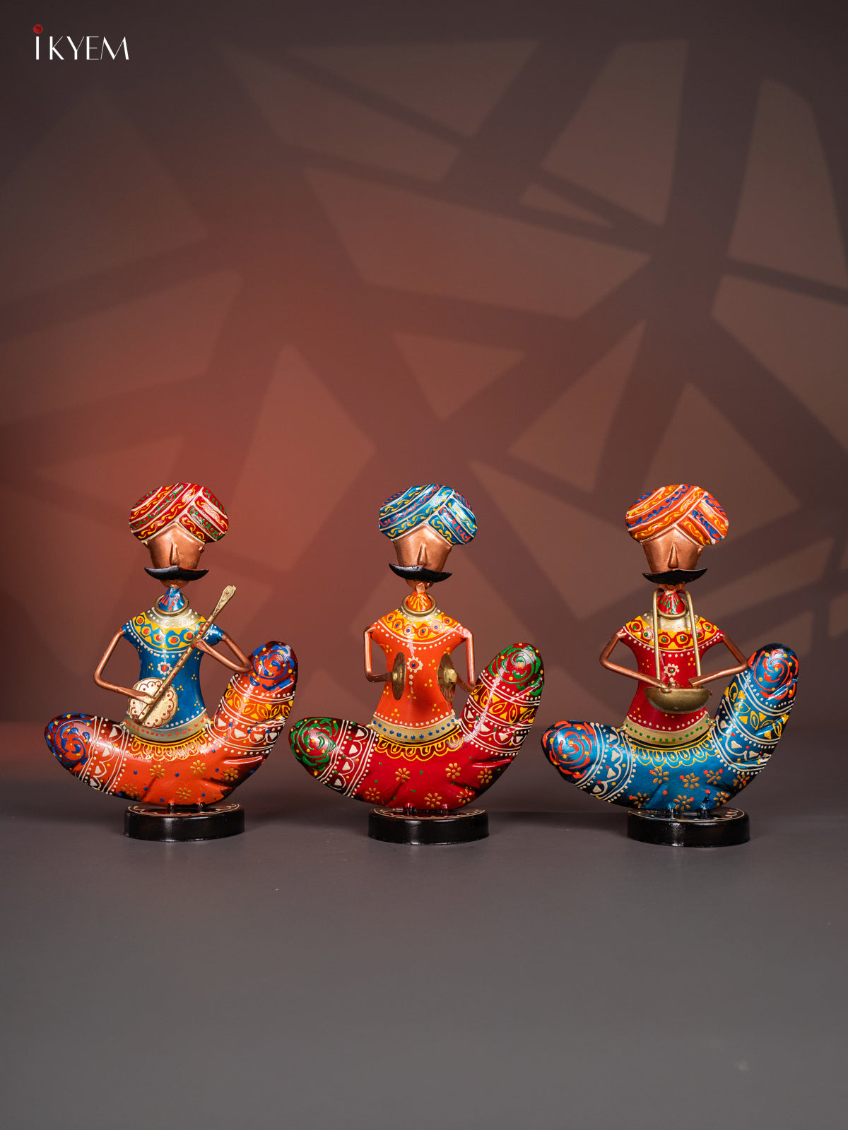 Metal Hand Painted Musician Rajasthani Set of 3 - 13 Inches - KI20111