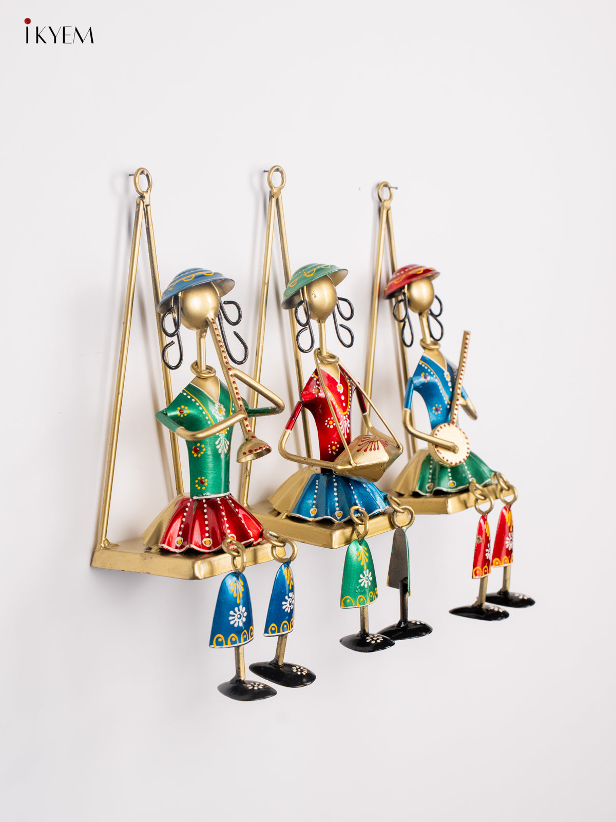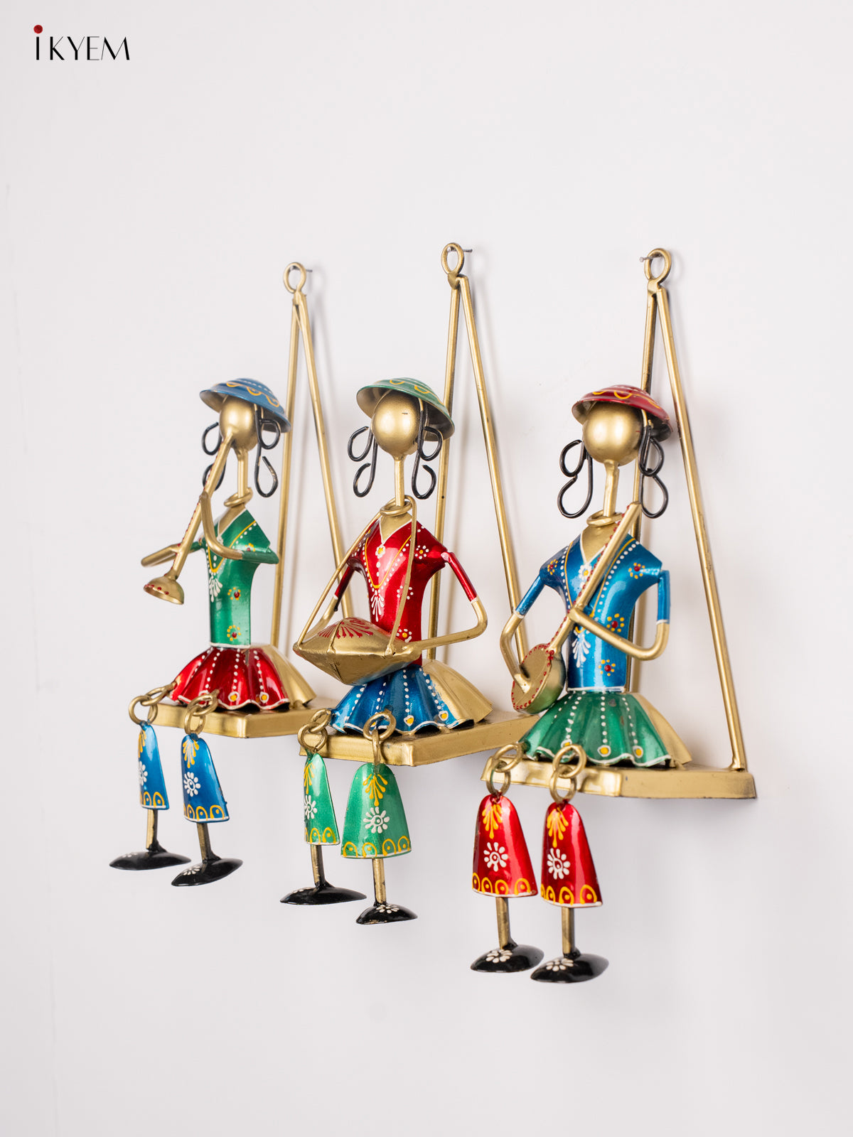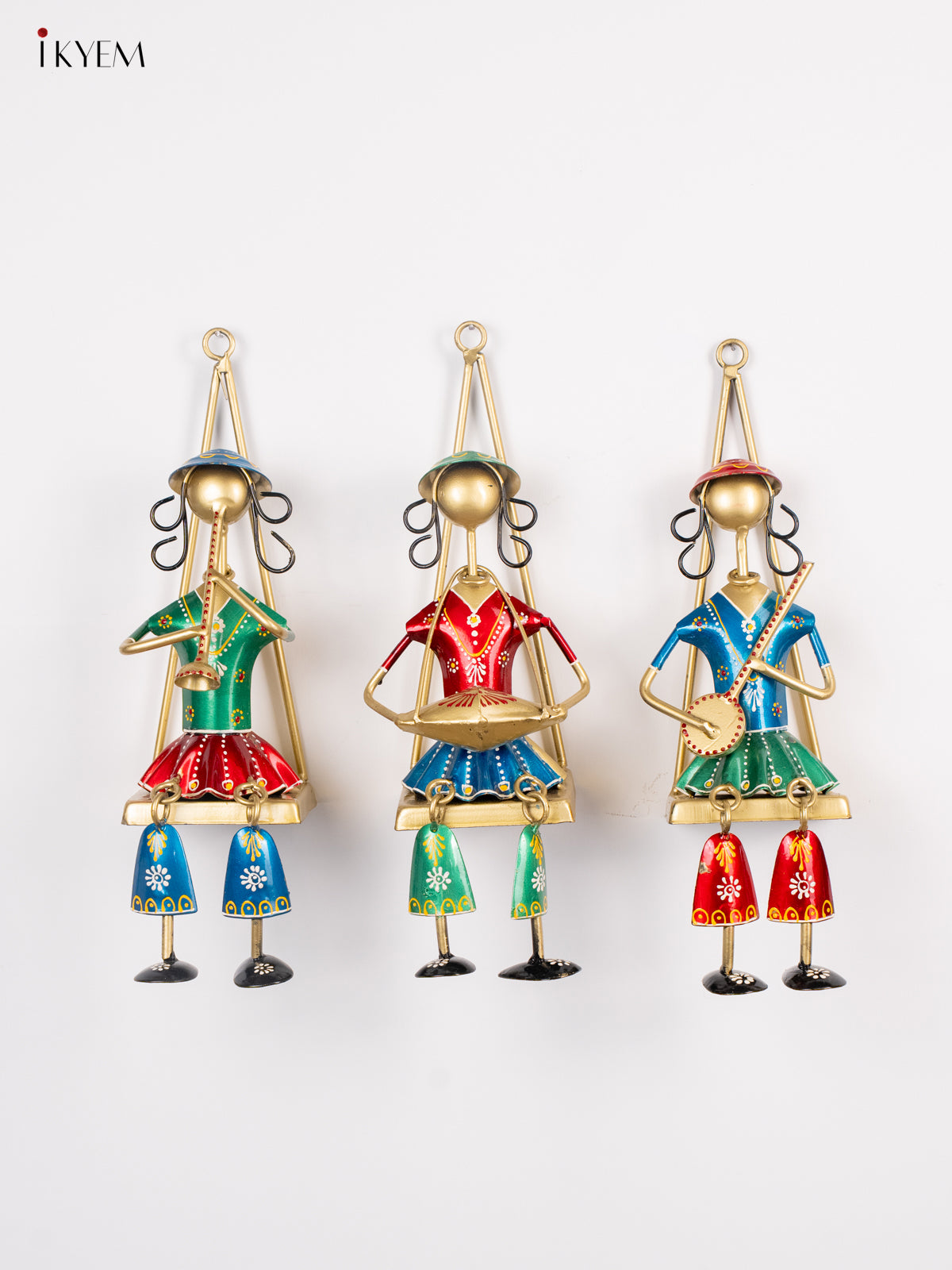 Metal Hand Painted Musician Ladys Wall Hanging set of 3 - 11 Inches - KI20118