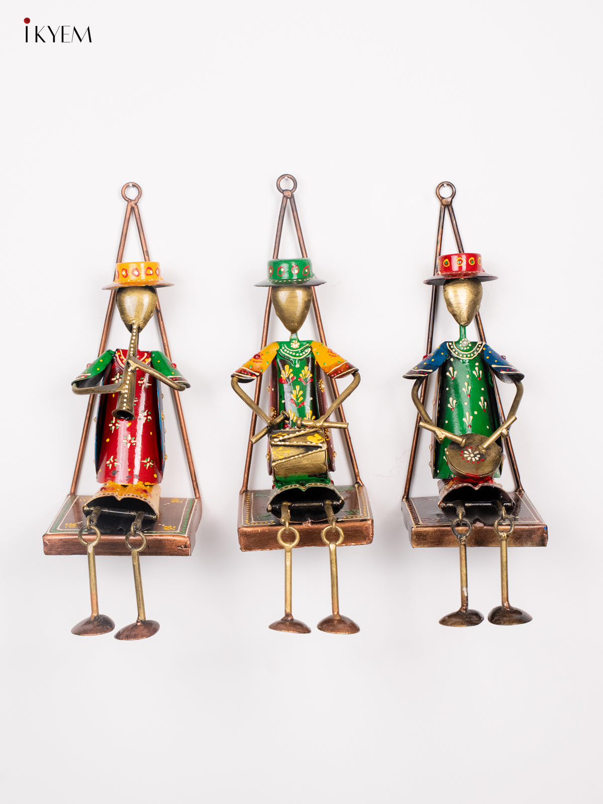 Metal Hand Painted Musician Boys Wall Hanging set of 3 - 12 Inches - KI20119