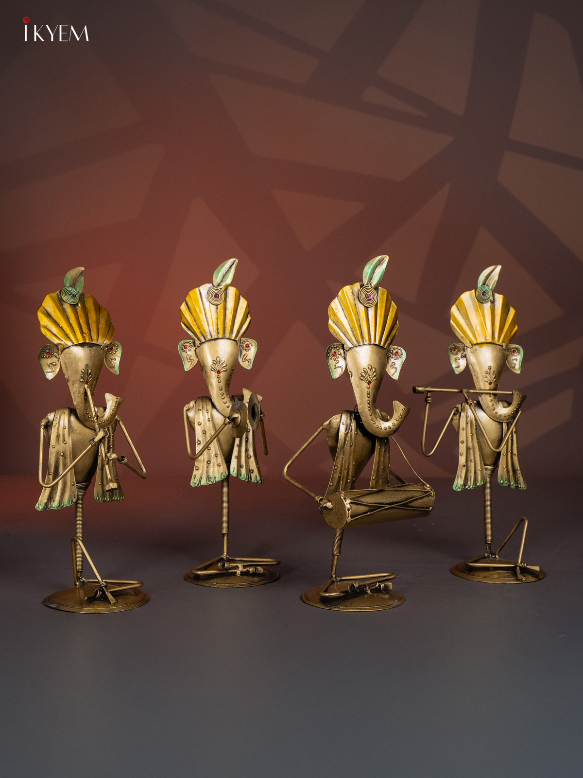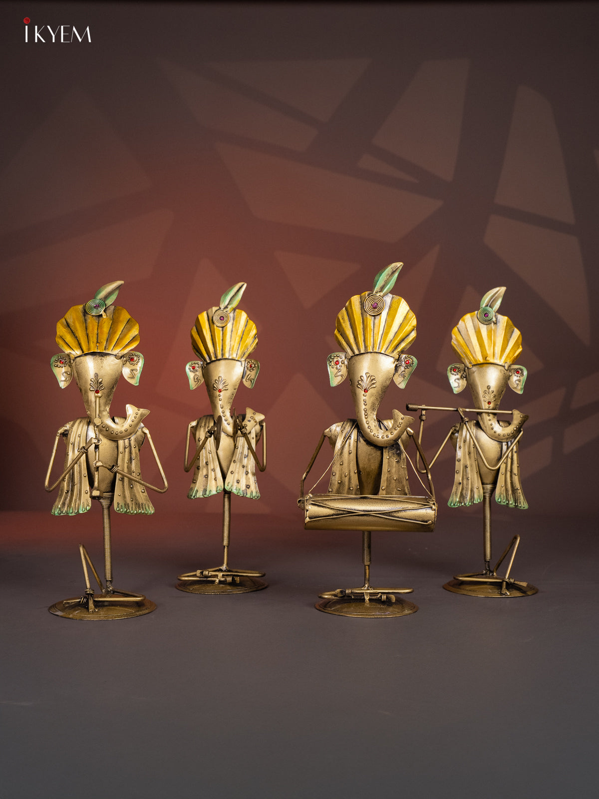 Metal Hand Painted Musical Ganesh Set of 4 - KI20121