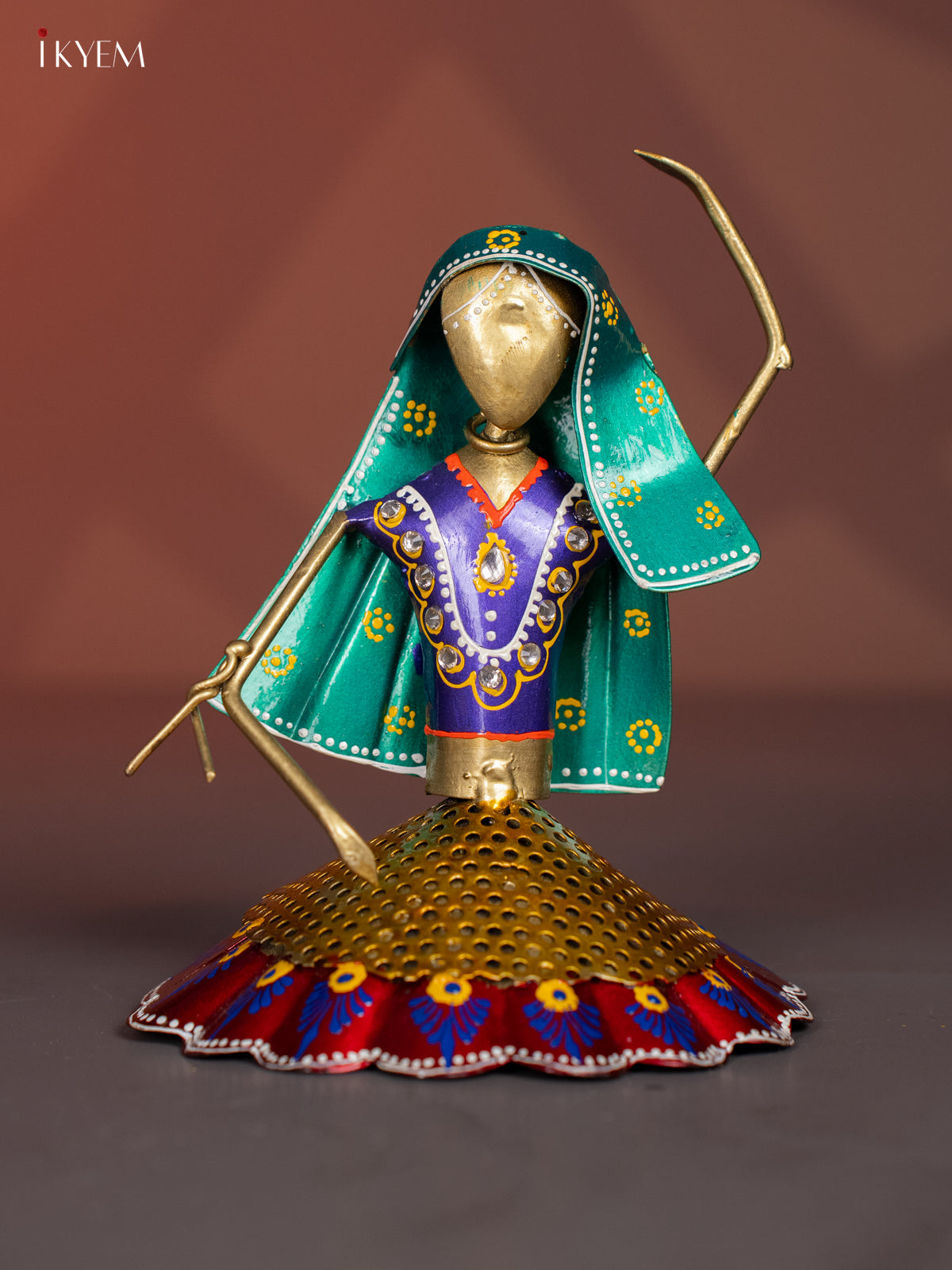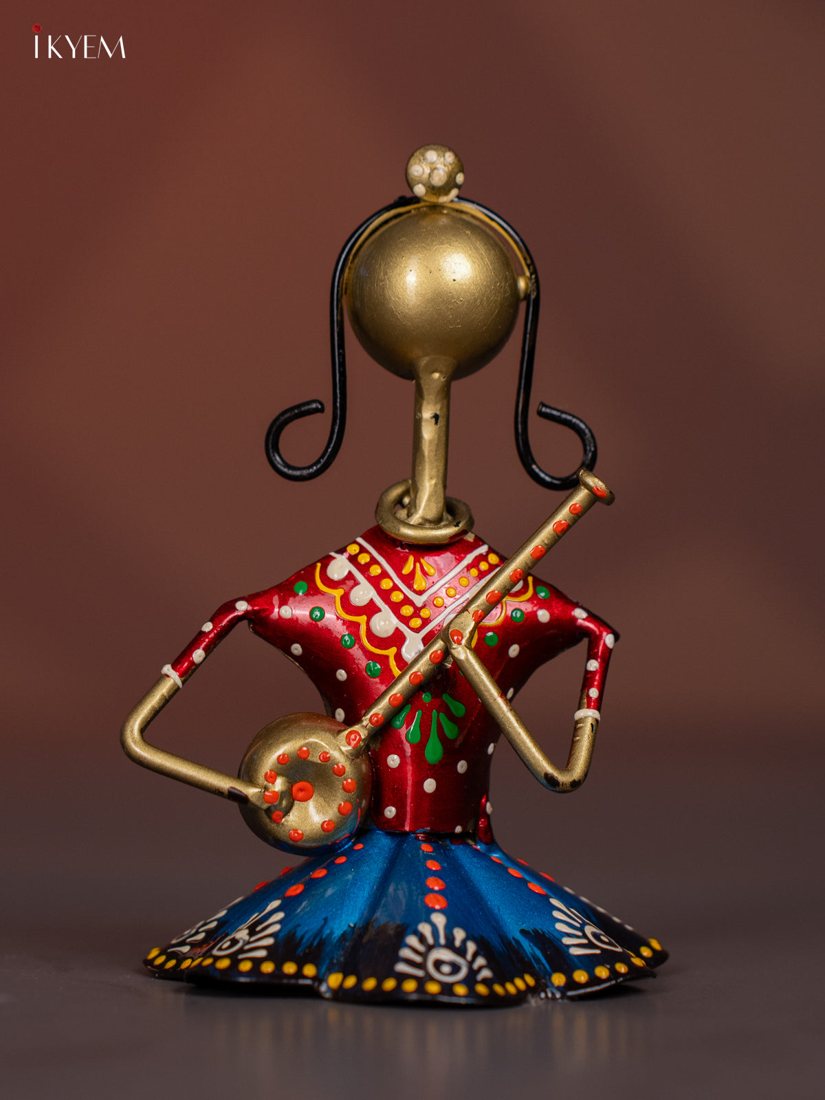 Metal Hand-Painted Dandiya Couple set of 2 - 13 Inch - KN12140