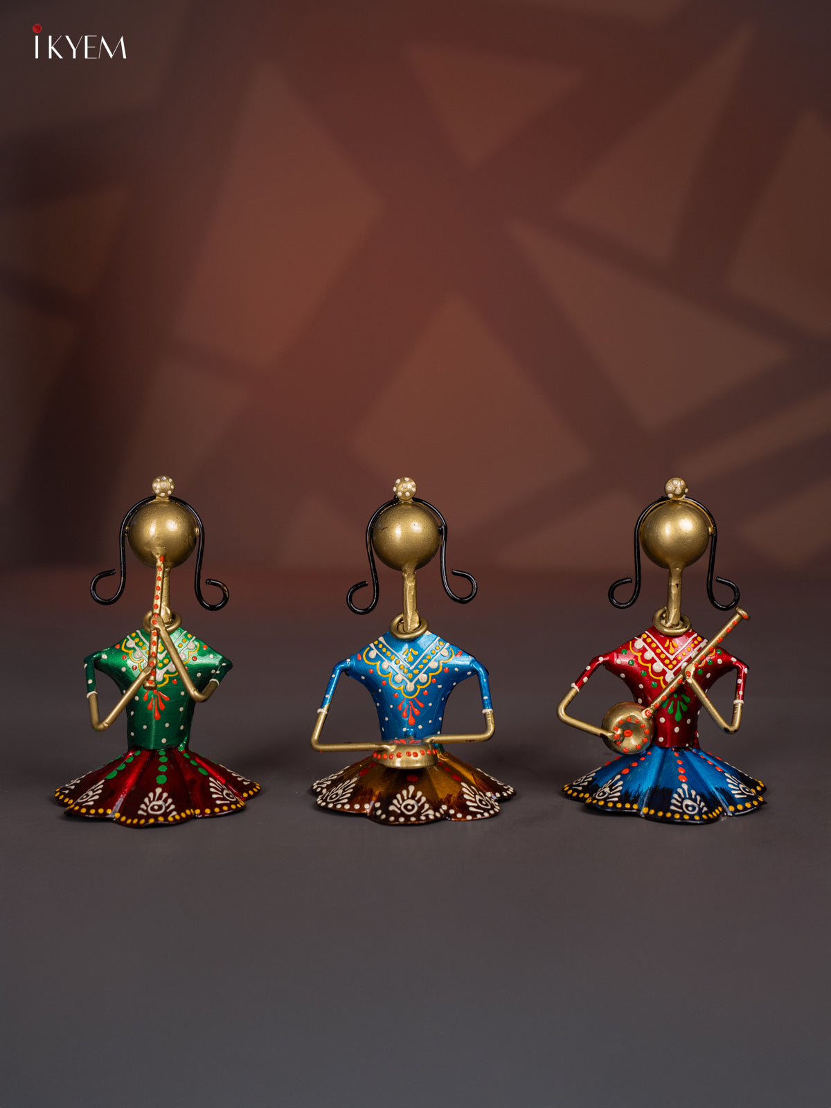 Metal Hand-Painted Musician Ladies Showpiece Set of 3 - 10 Inch - KI20117