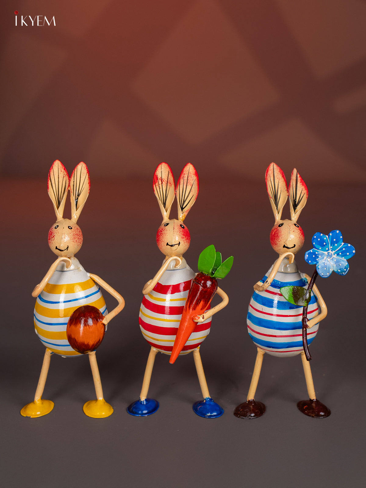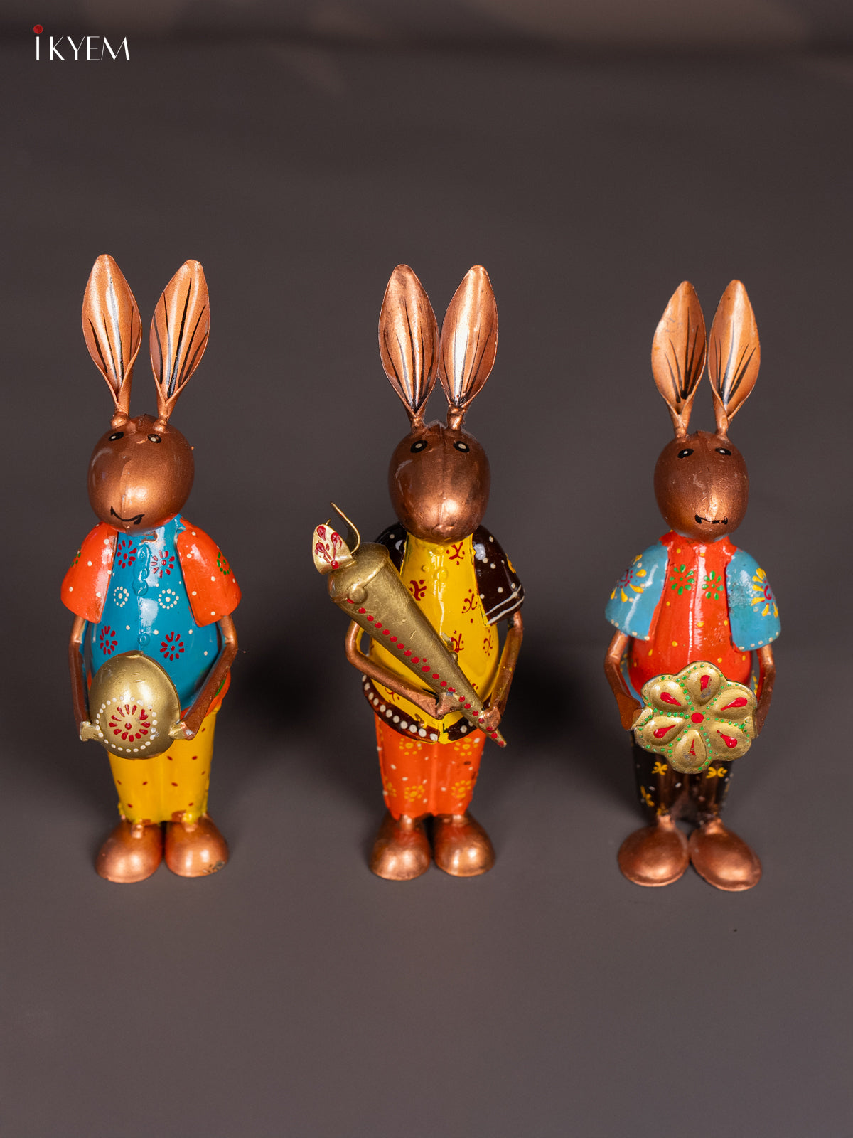 Metal Hand Painted Rabbit set of 3 - 6 Inches - KI20129
