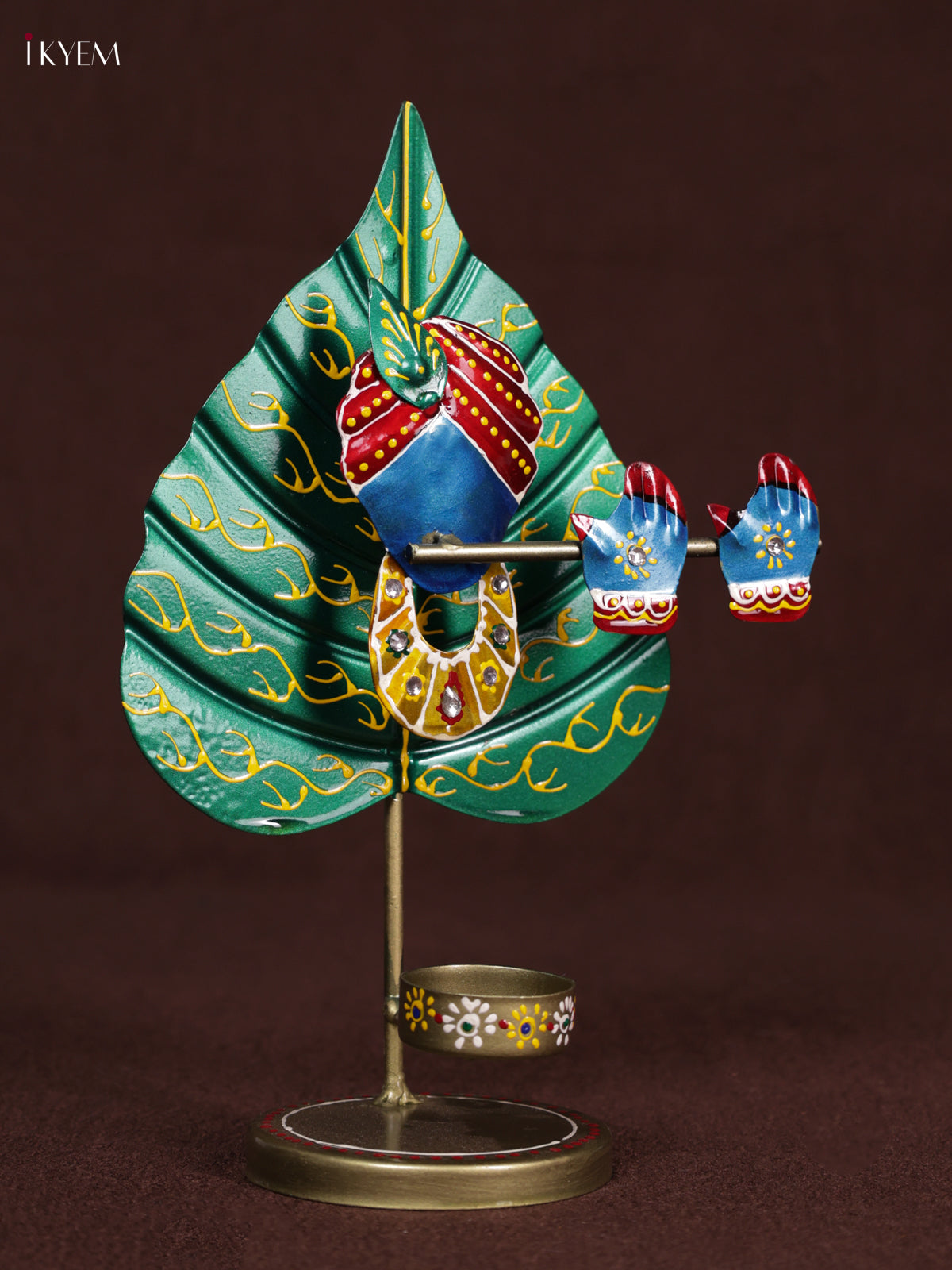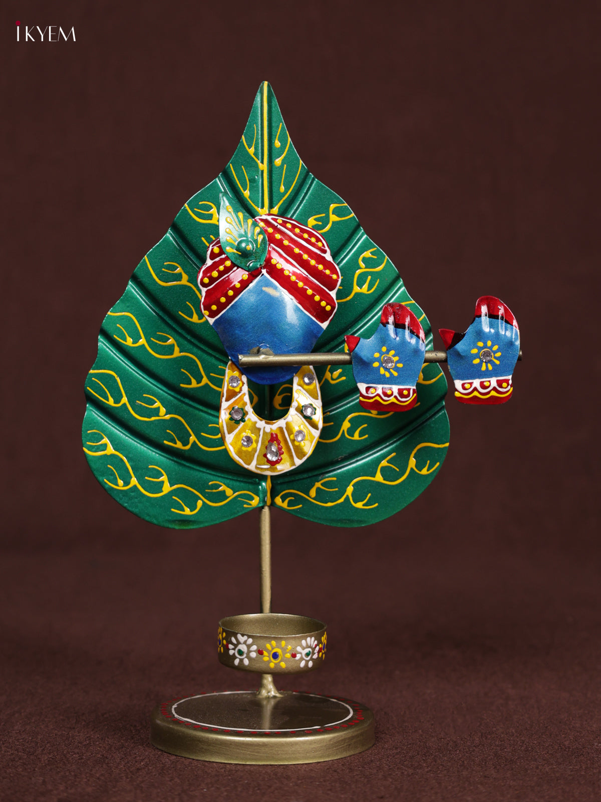 Metal Hand Painted Leaf Krishna T - light - KEB1413