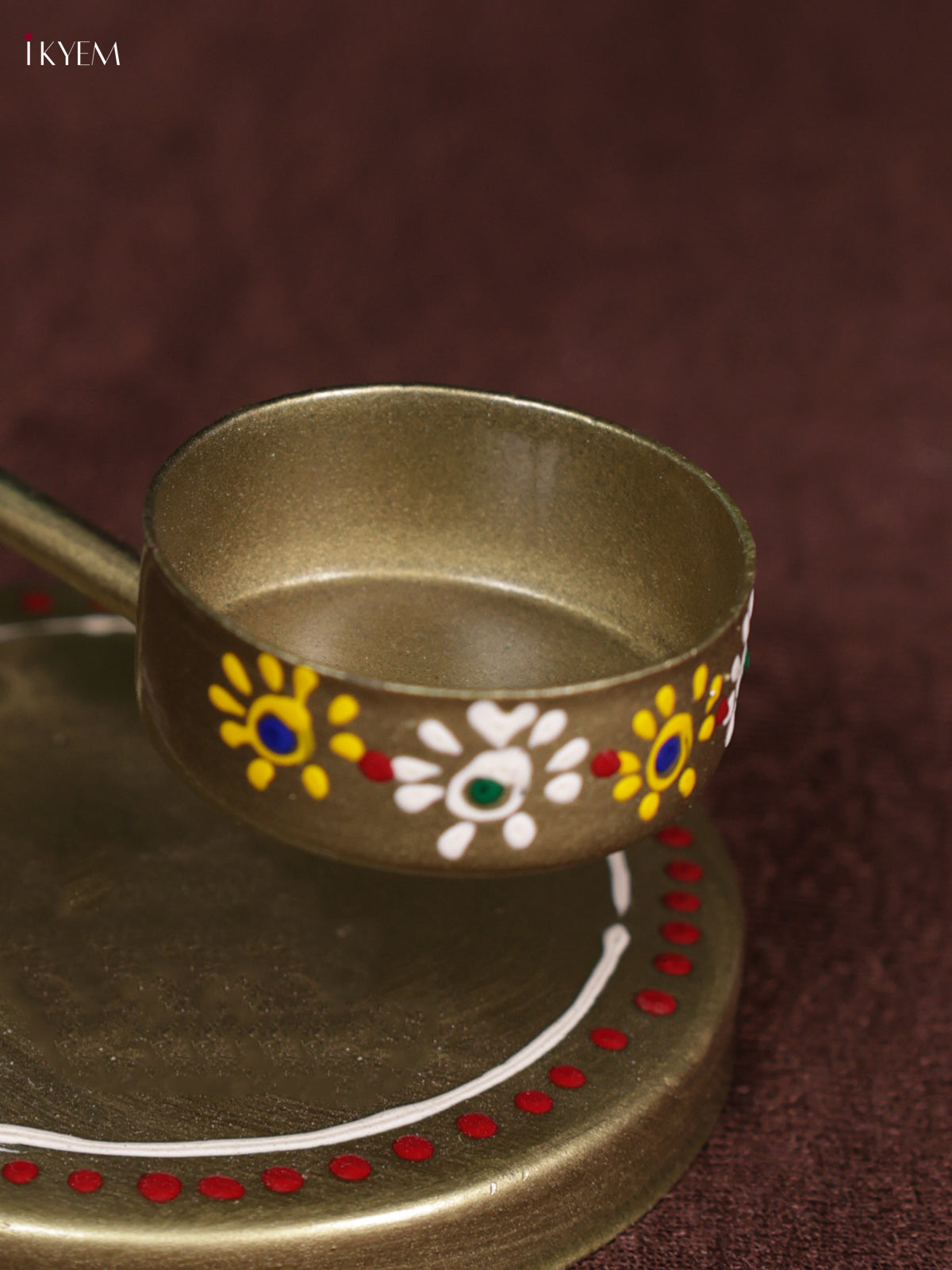 - The Metal Hand-Painted Leaf Krishna T-Light is a decorative devotional lamp featuring Lord Krishna artistically mounted on a stylized leaf backdrop, with a holder designed for a tea light candle