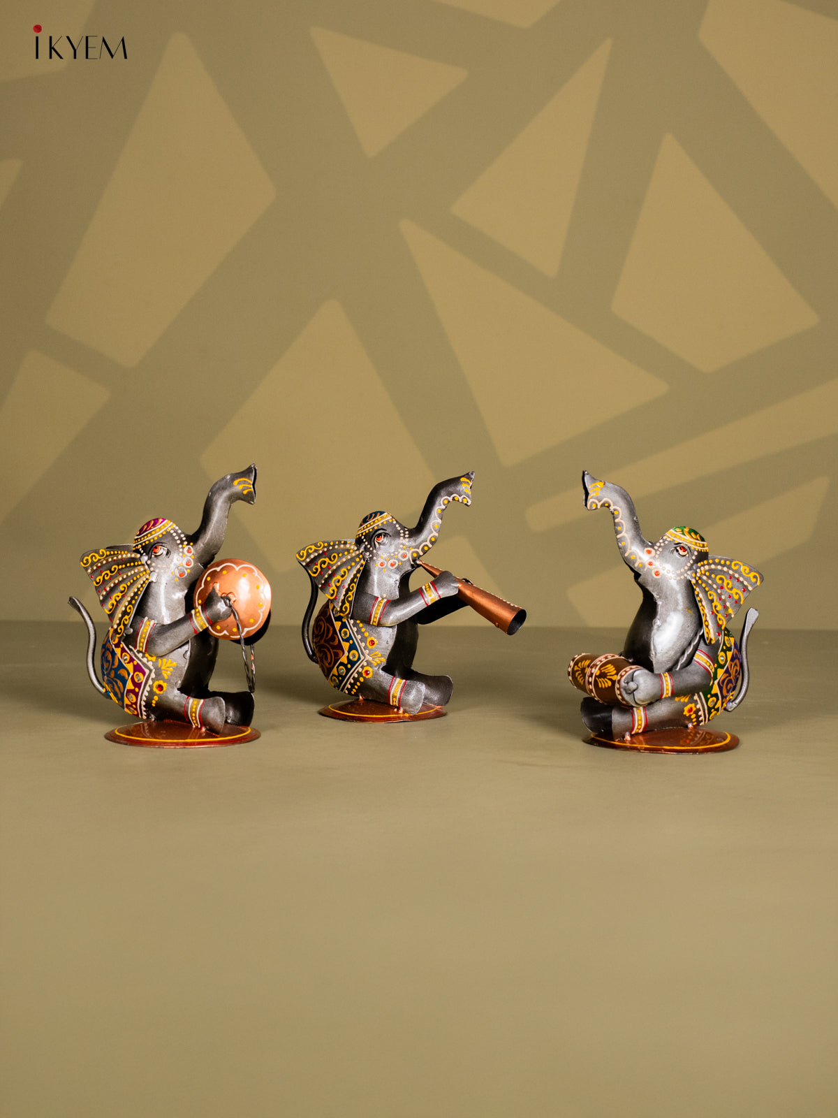 Metal Hand Painted Musical Elephant Set of 3 - 7 Inches - KI20131