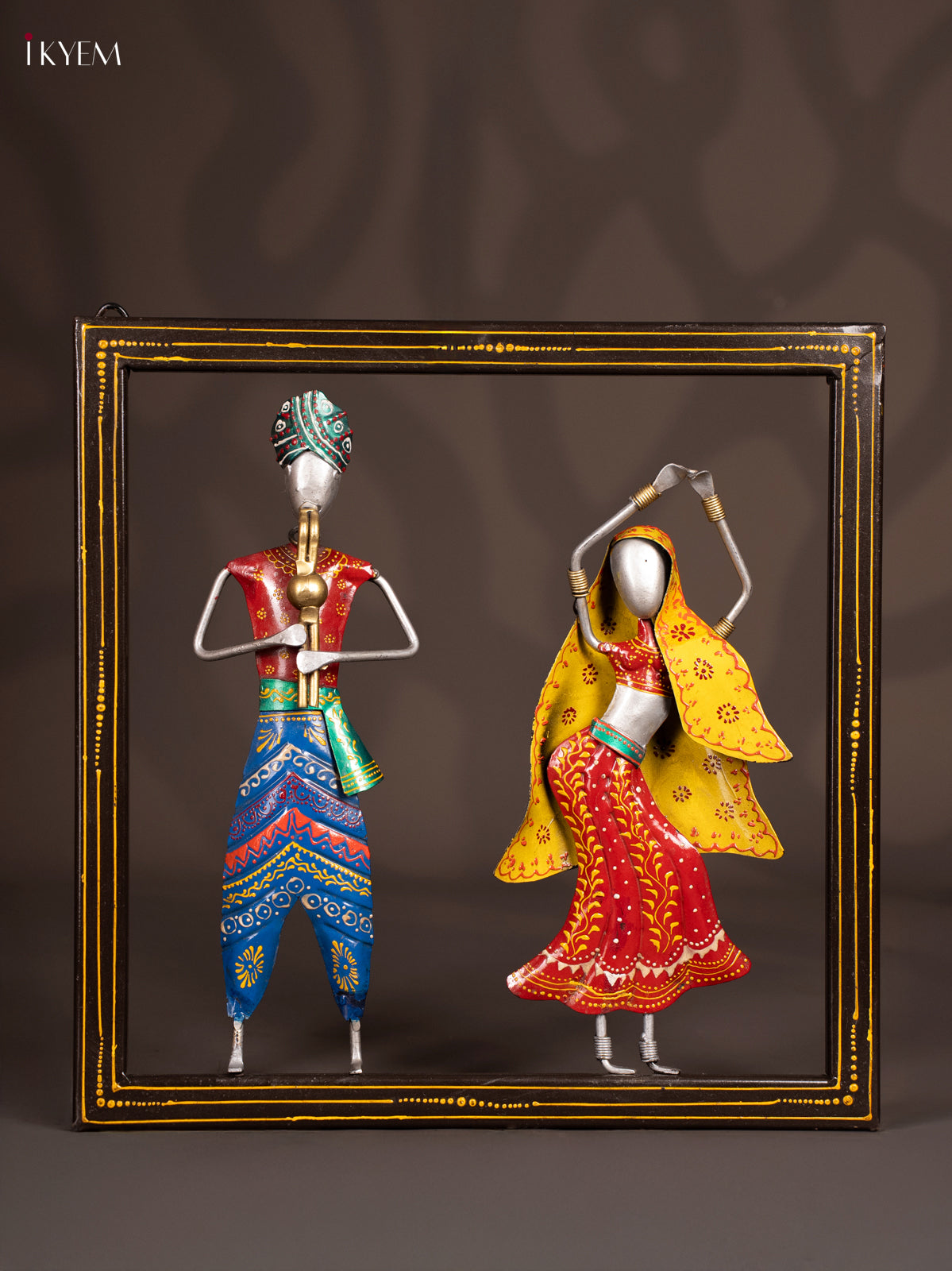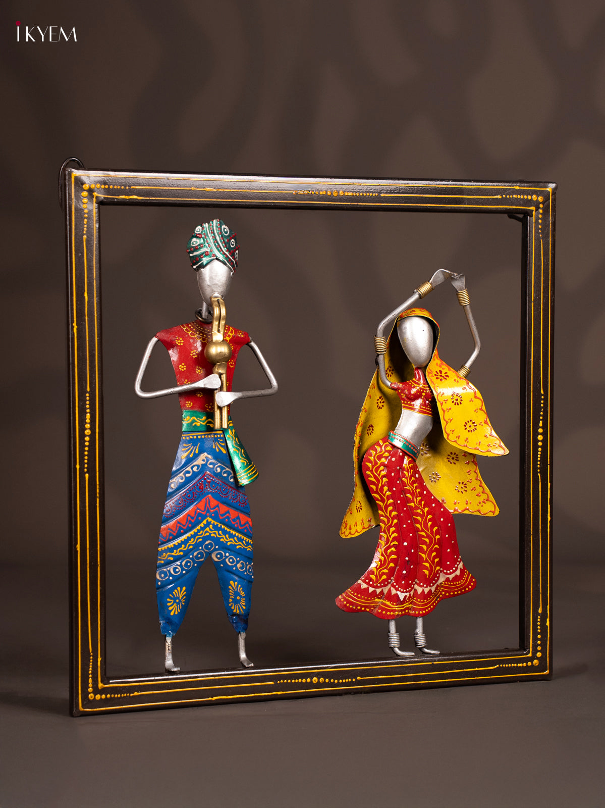 Hand-Painted Metal Dancing Couple Wall Frame - 15 Inch - KN12143