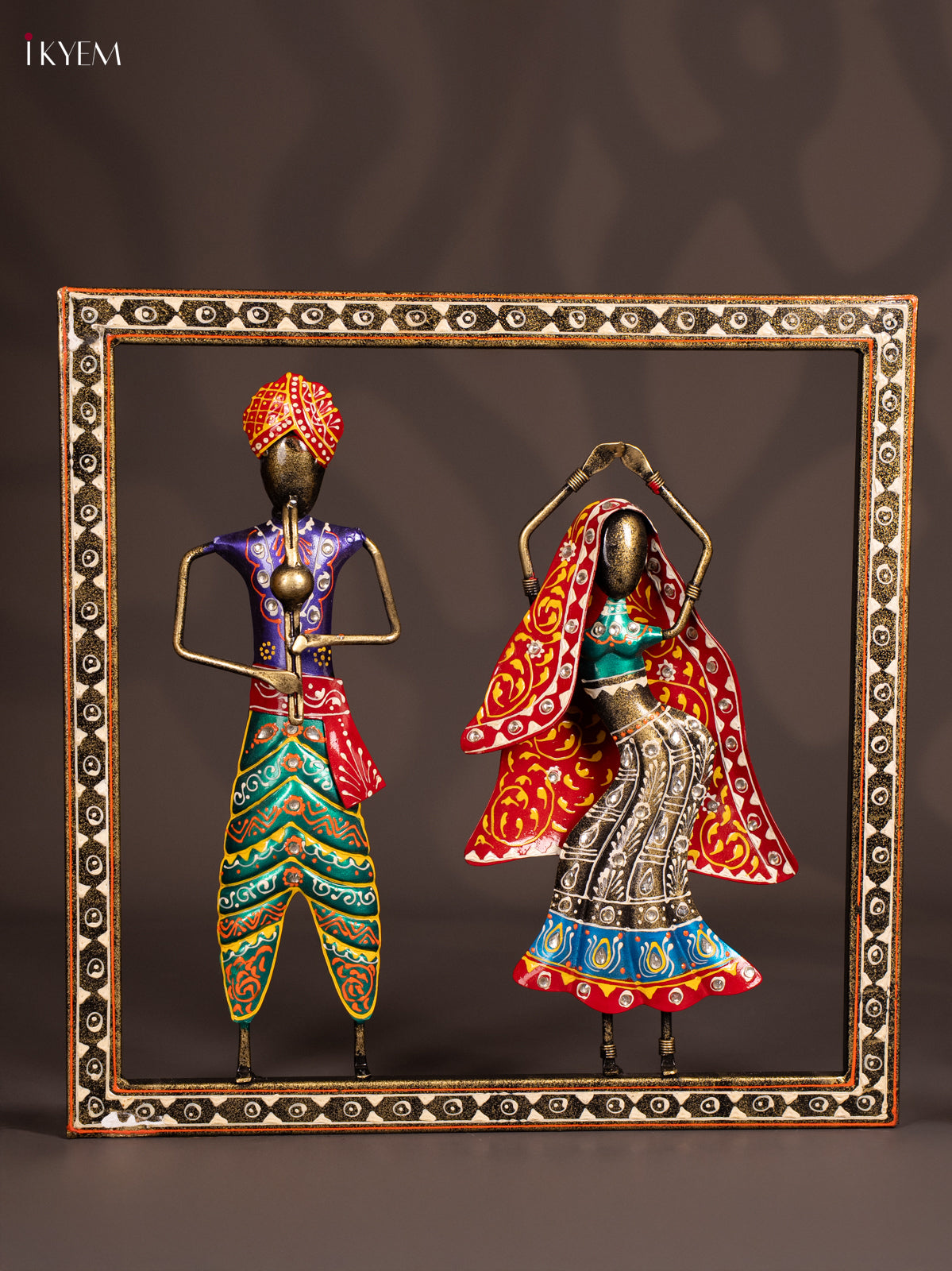 Hand-Painted Metal Dancing Couple Wall Frame - 15 Inch - KN12145