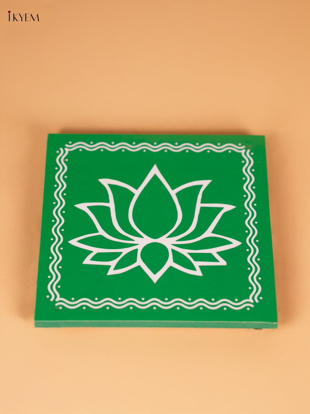 Lotus Wooden Square Manai - Green - (6x6) Inches - KN12124