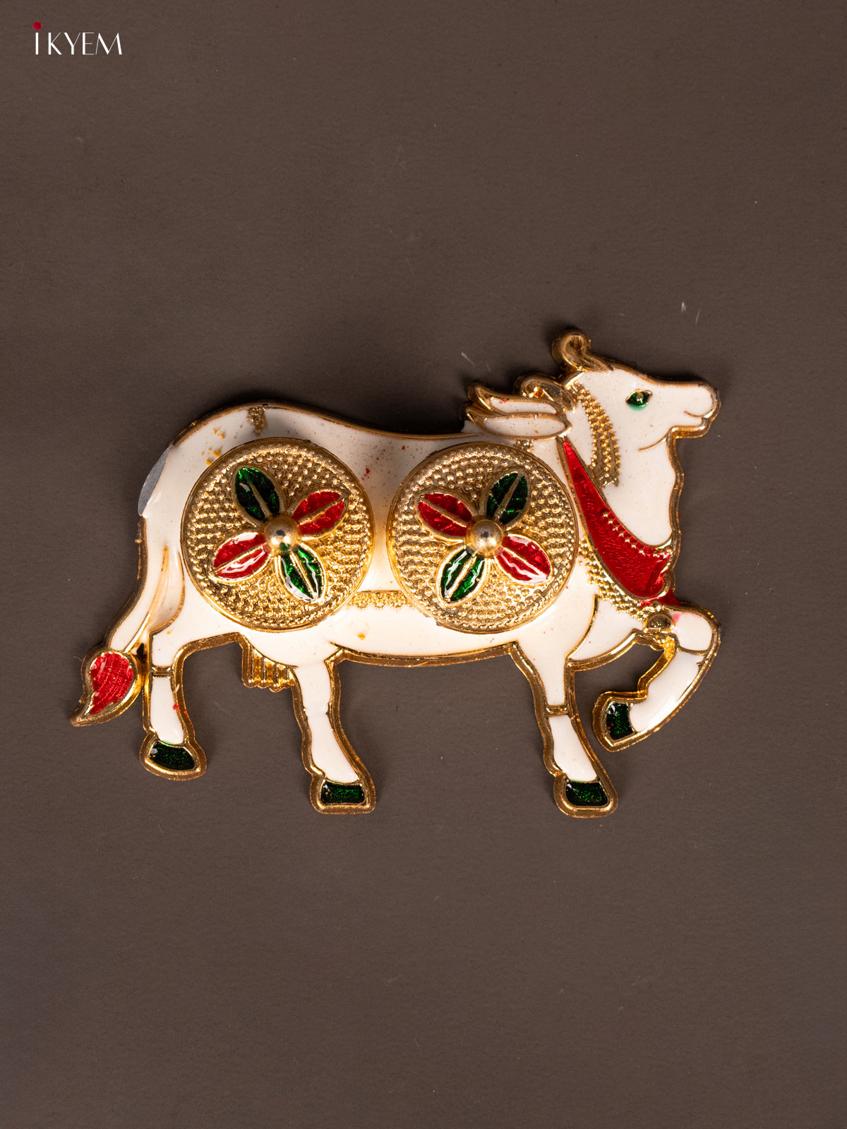 - This cow-shaped plate with haldi and Kumkum holders is designed for traditional pooja ceremonies, making it ideal for Navaratri and Varamahalakshmi celebrations.