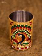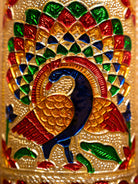 - This elegant 4 Inch Meenakari steel tumbler adds a touch of traditional opulence to any dining experience.