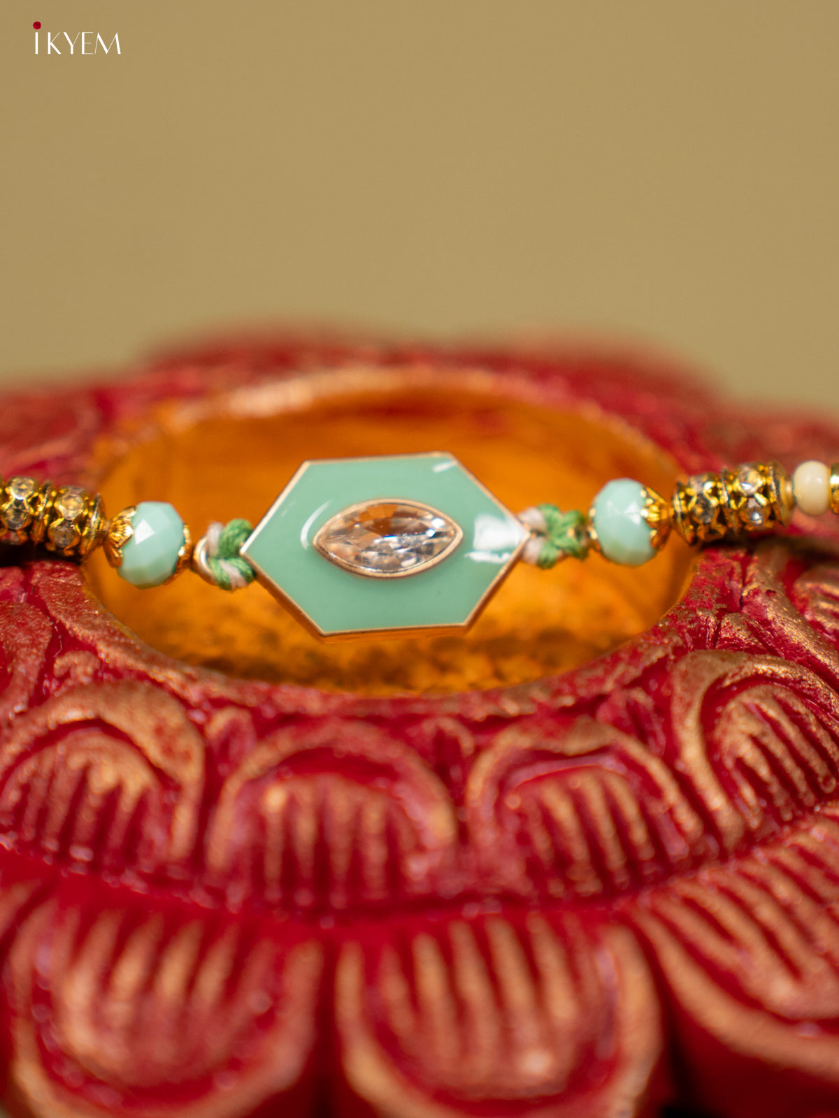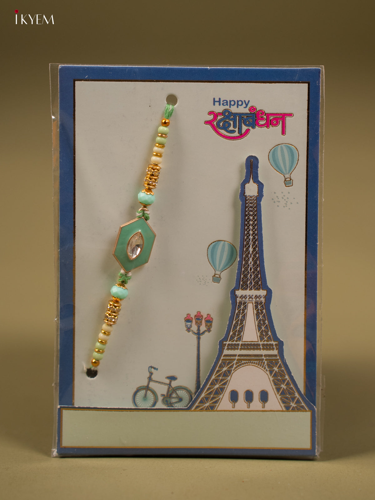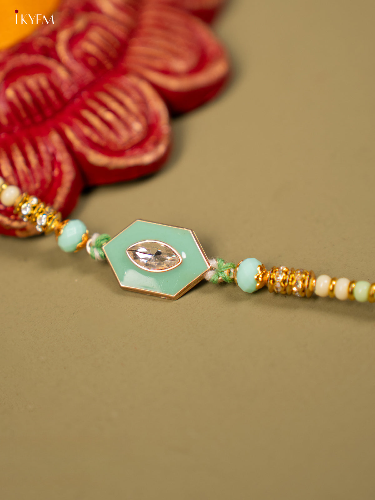 - Designed to add elegance to your festive moments, this Rakhi stands out with its distinctive style.