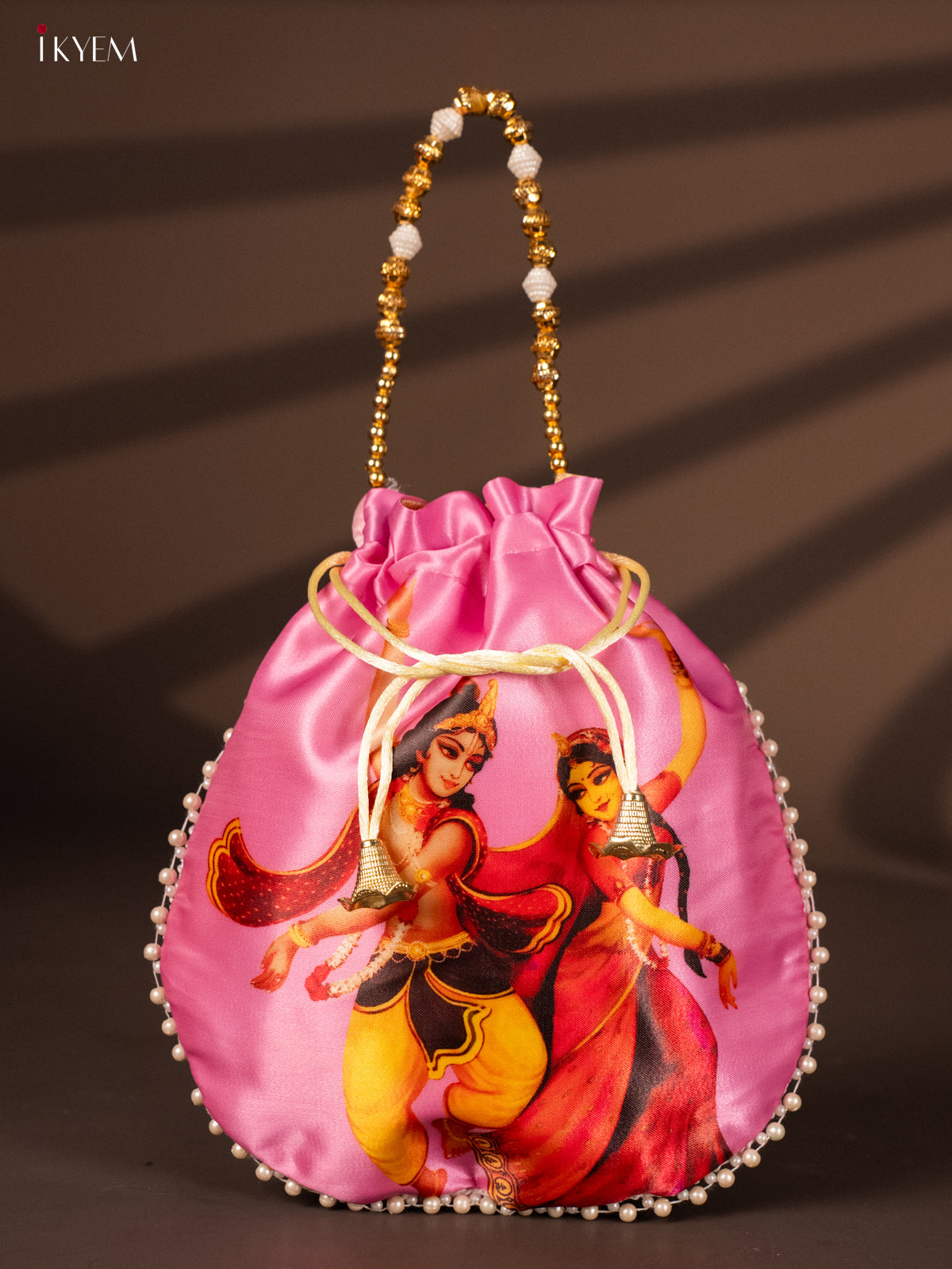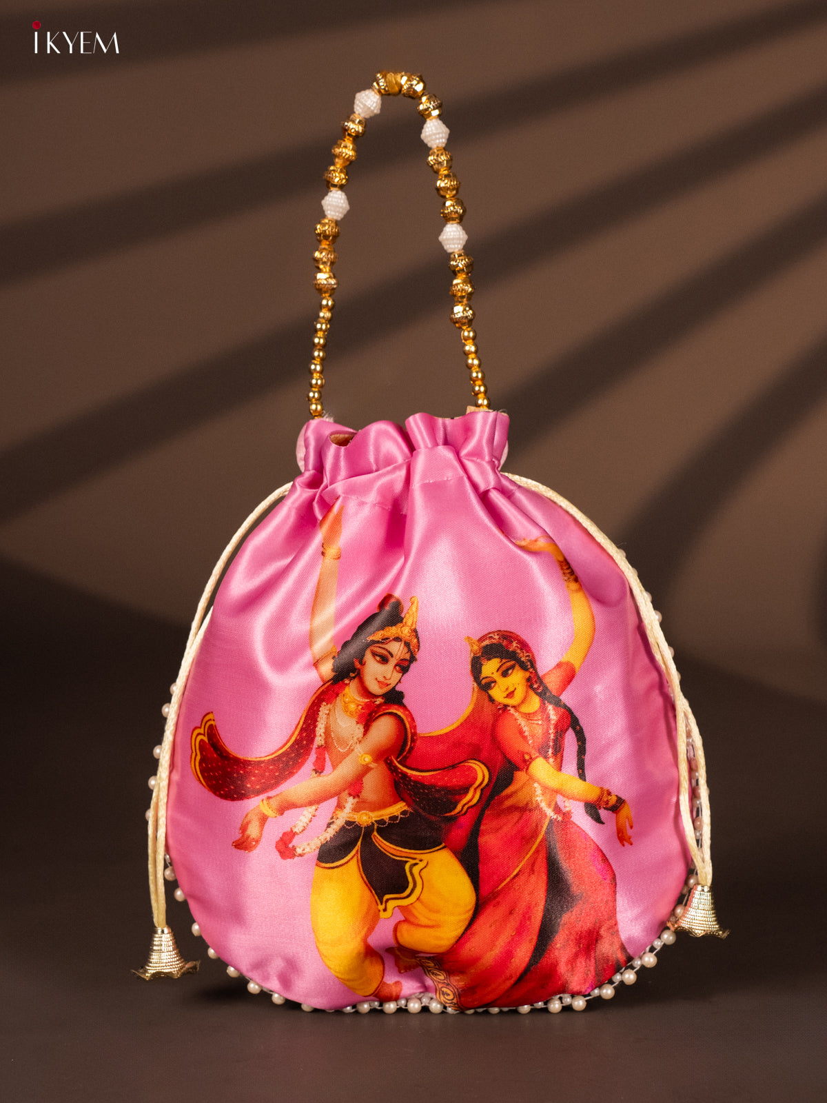 Radha Krishna Digital Printed Potli Bag - Baby Pink - KH22154