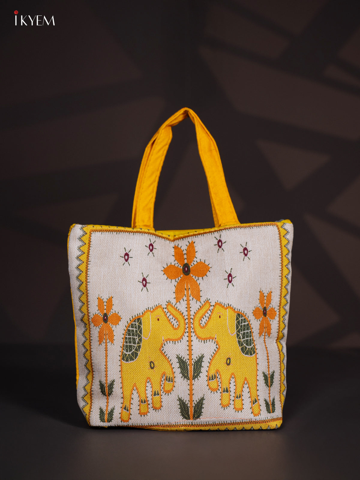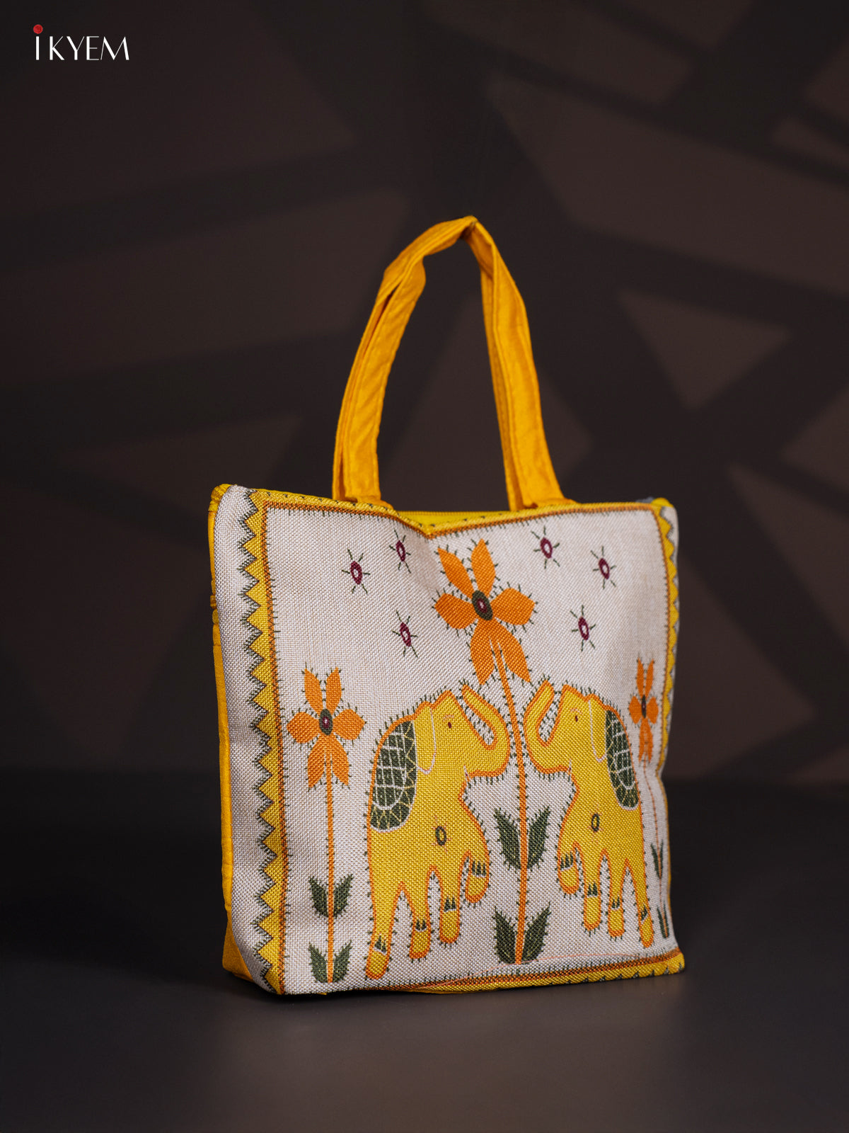 Elephant Design Jute Handbag- Yellow - KI24119