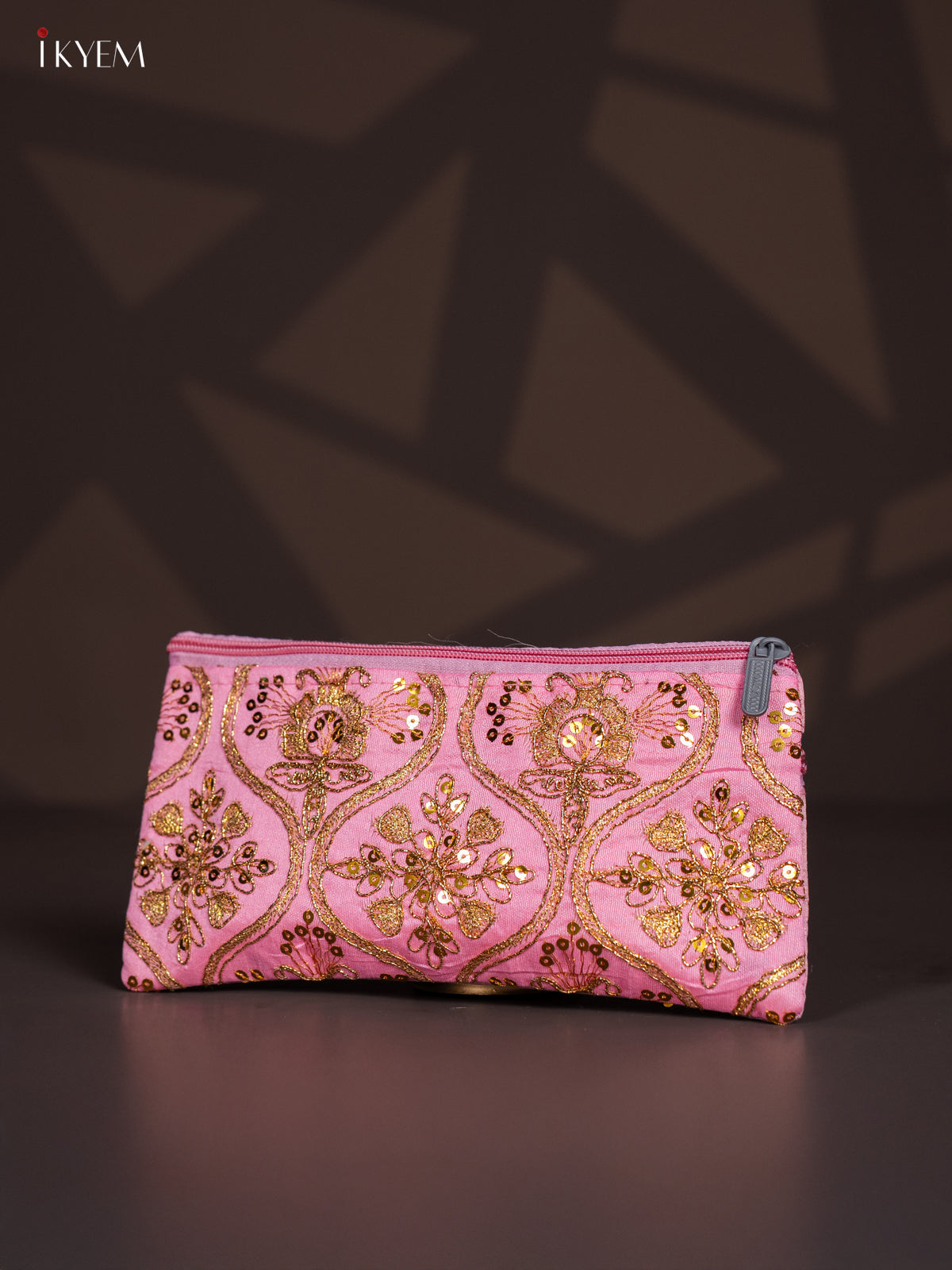 Golden Embroidered Work Purse - Baby Pink - KI24128