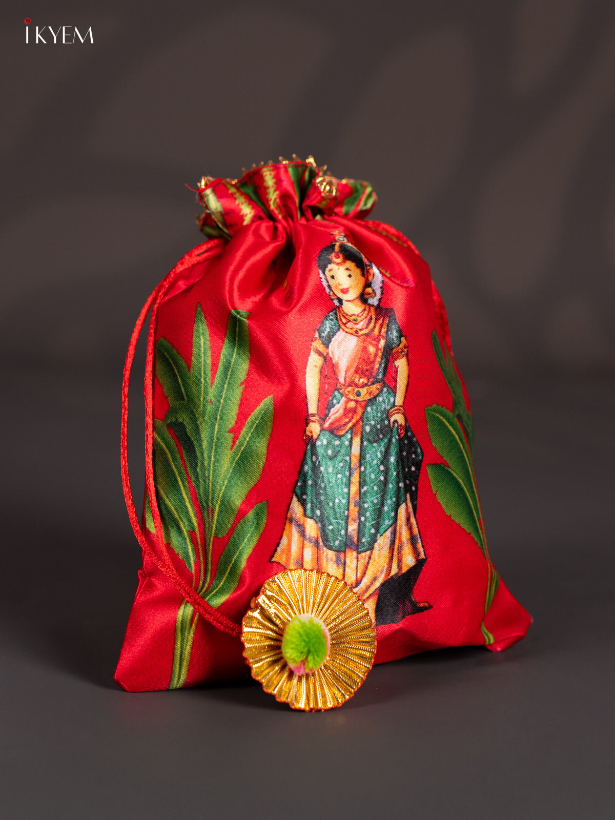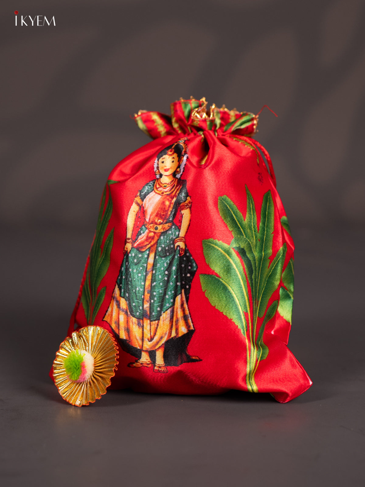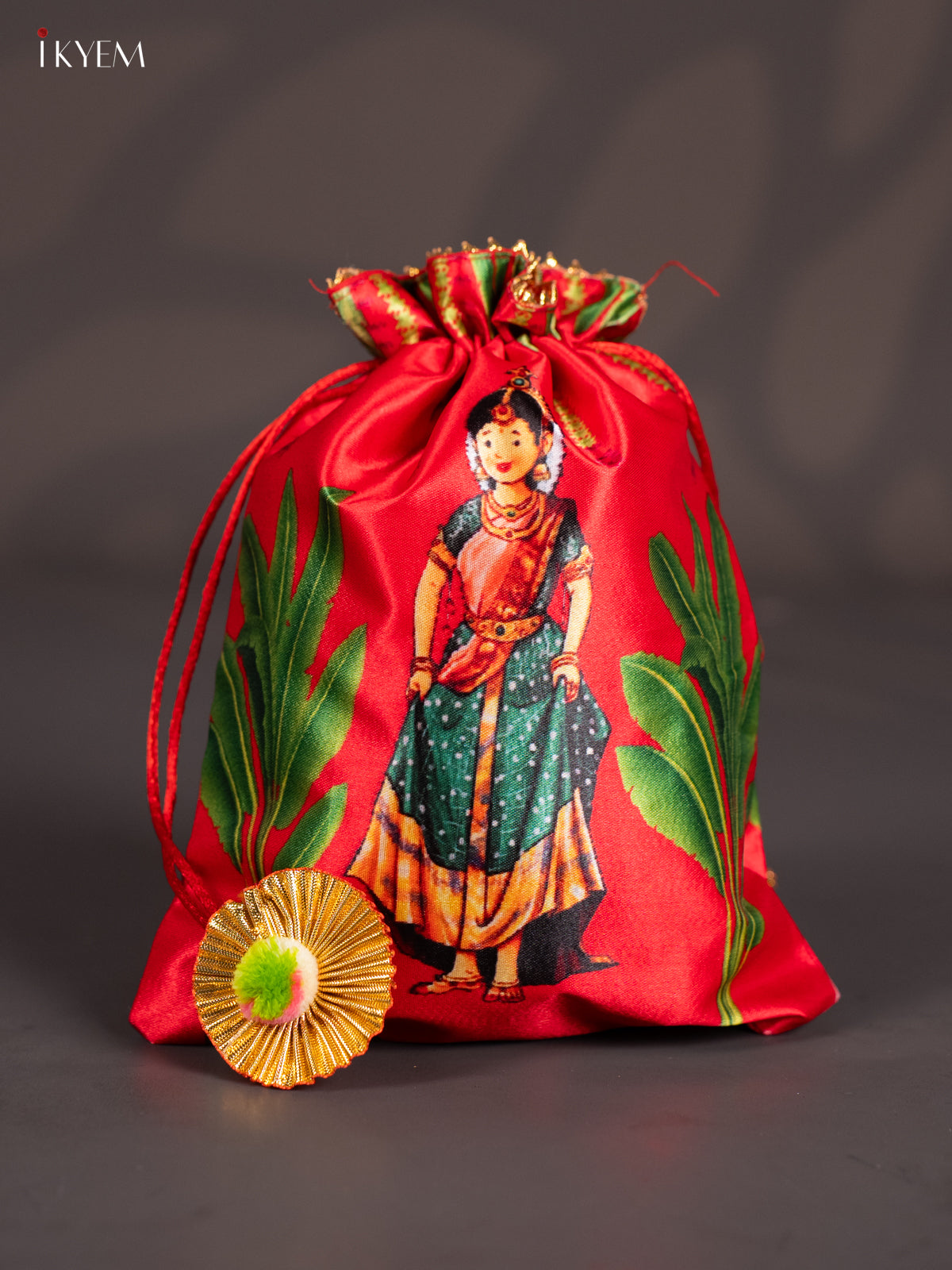 - This traditional potli features a convenient drawstring closure, making it both functional and culturally significant.