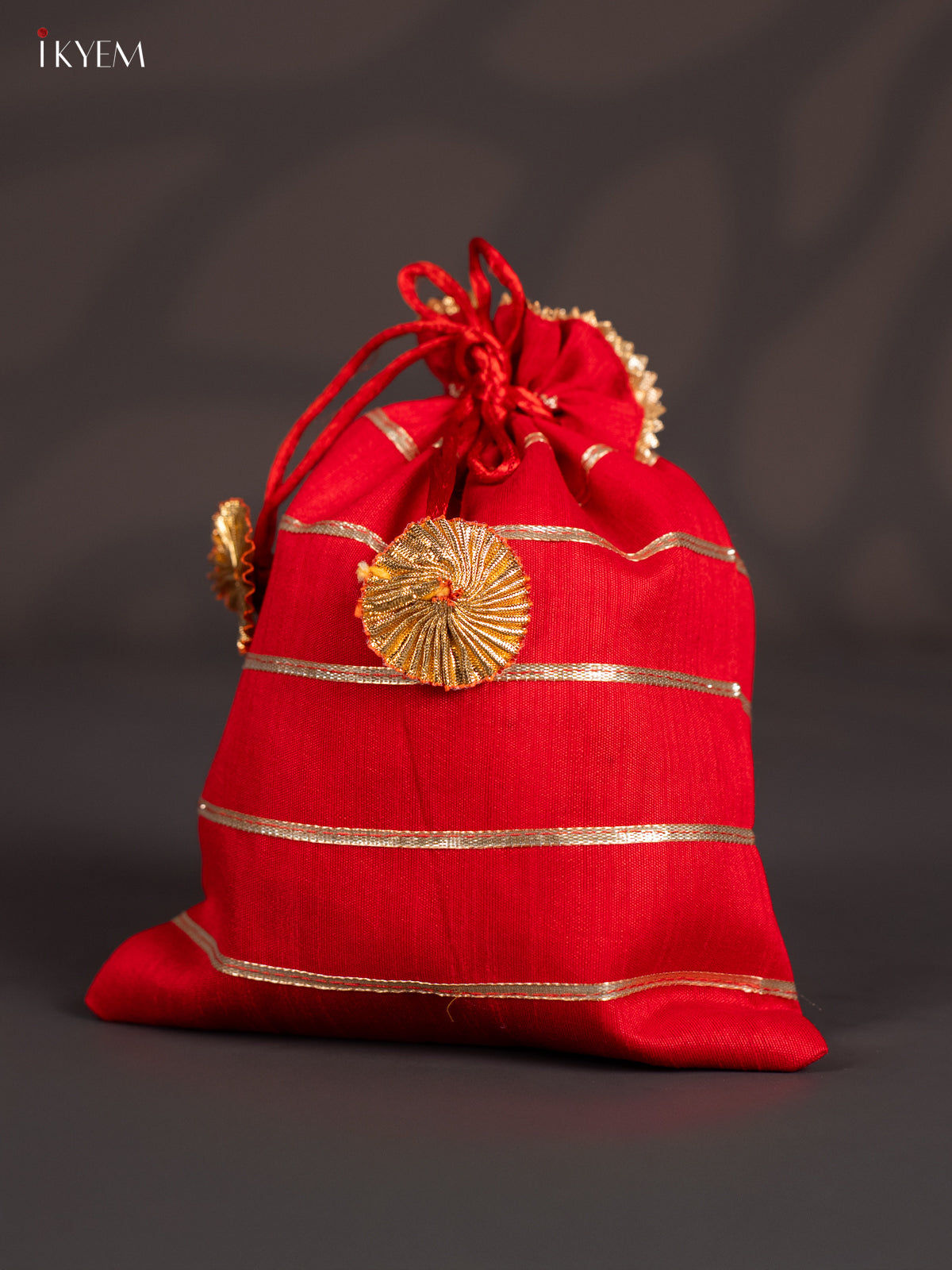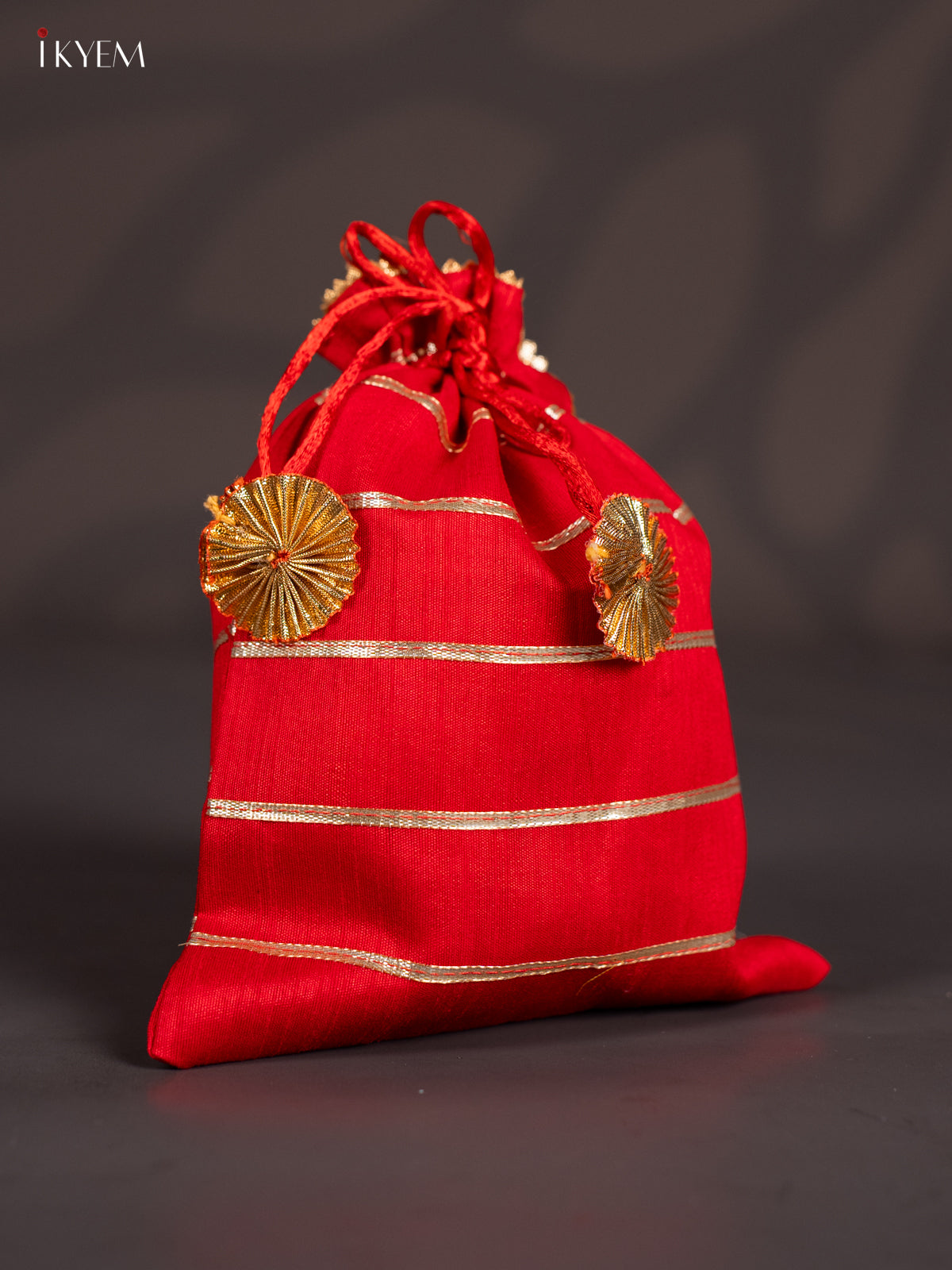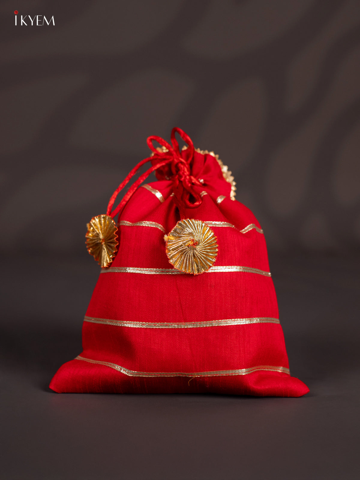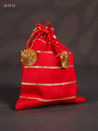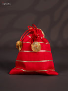 Organza Potli Bag writh Striped lace - Red