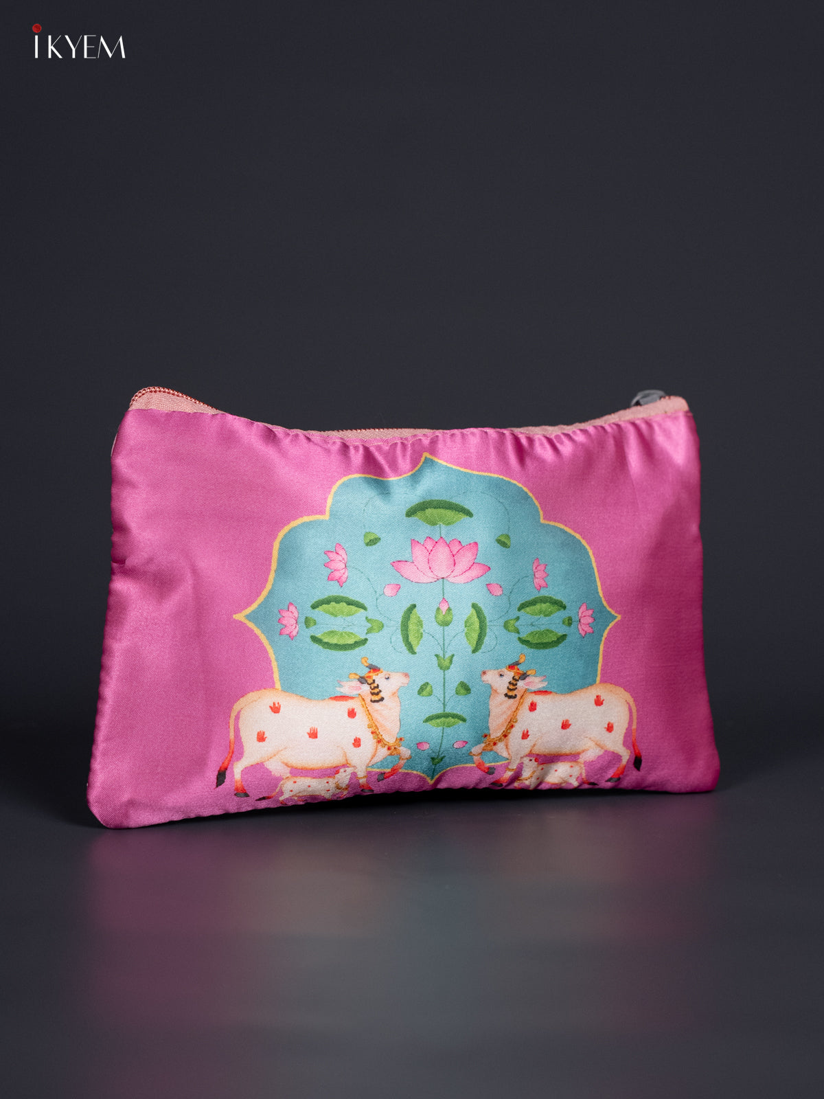 - Celebrate tradition with this charming Pichwai Cow & Calf Purse in baby pink.
