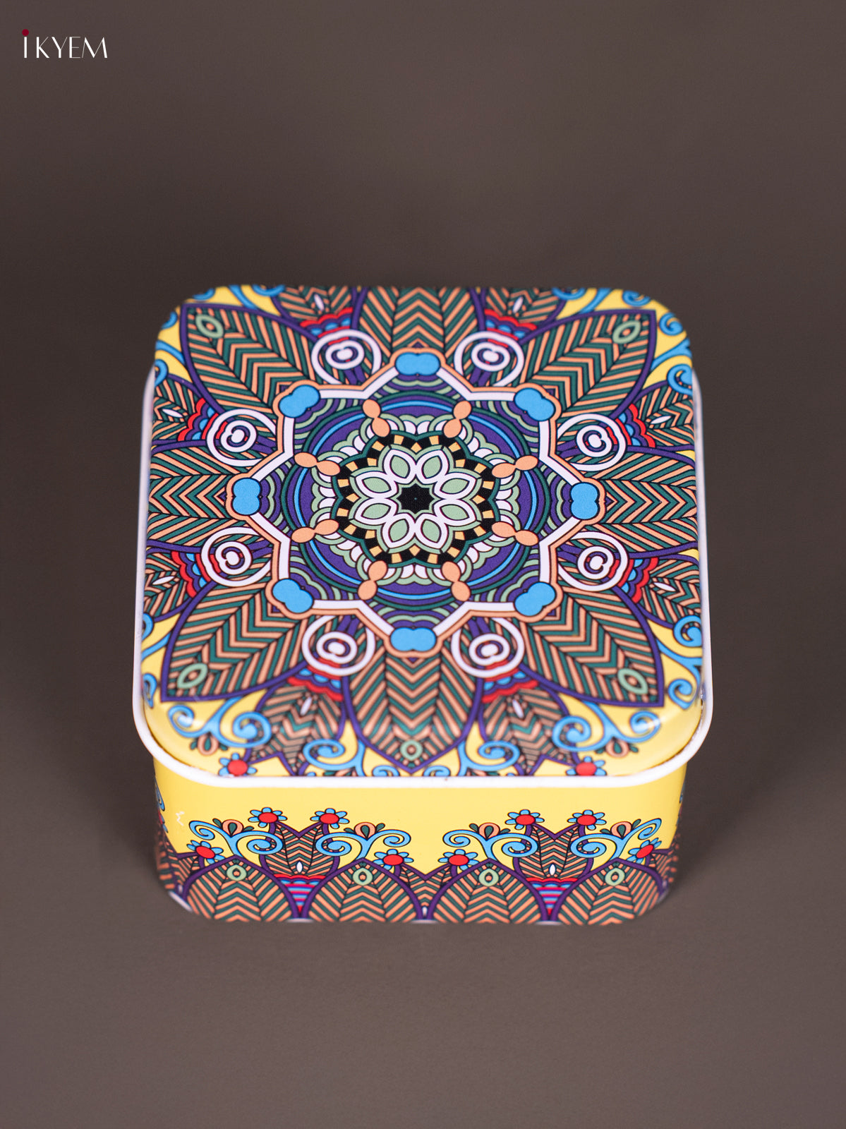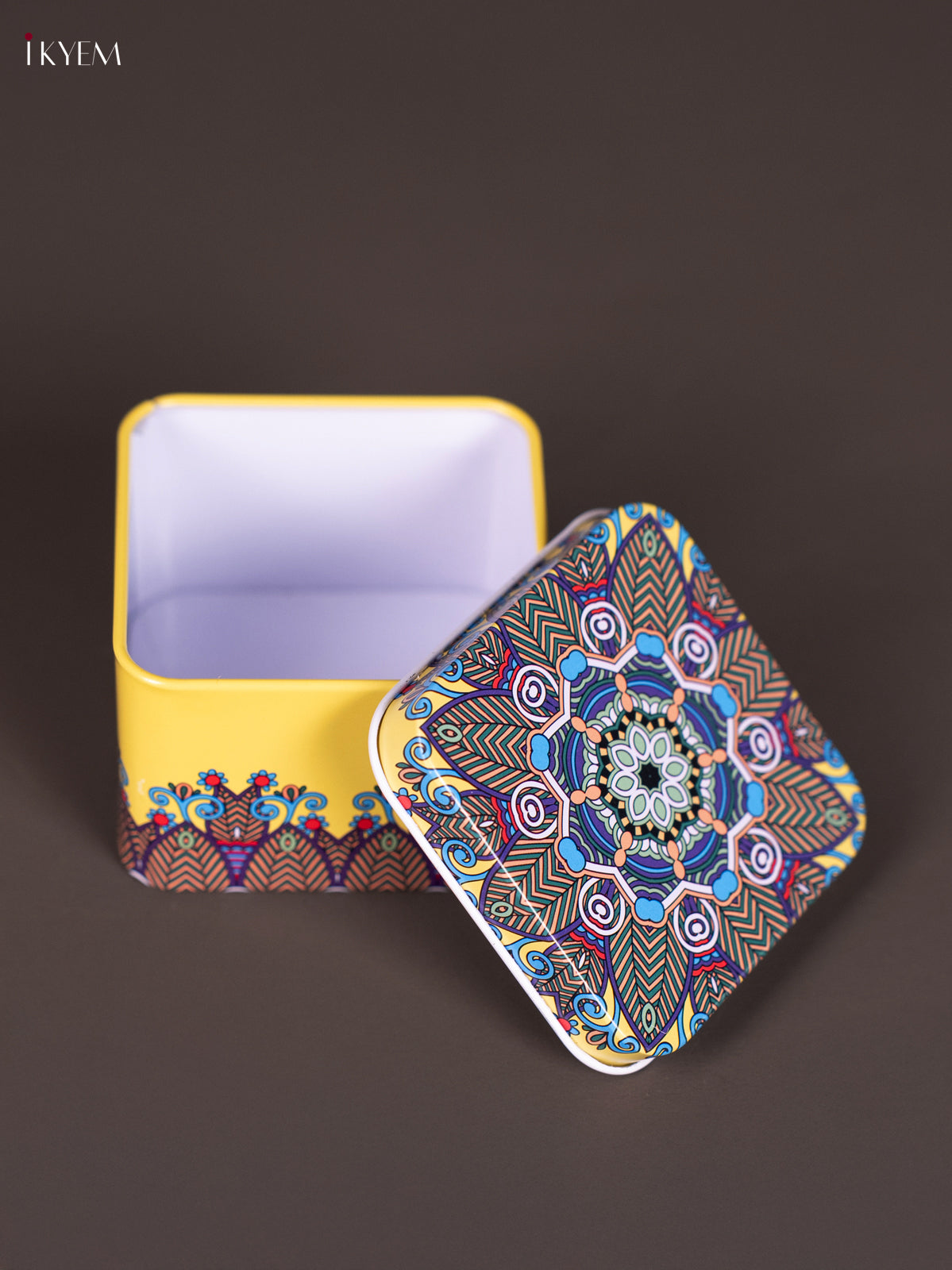 - This Multicolour square decorative tin box combines elegant design with practical function, making it ideal for storing small items or presenting return gifts.
