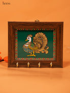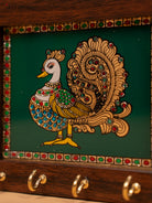 - Expertly crafted with reverse glass painting Key hanger features a vibrant Green Annapakshi design.