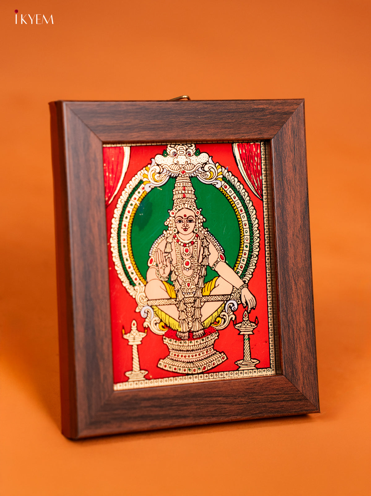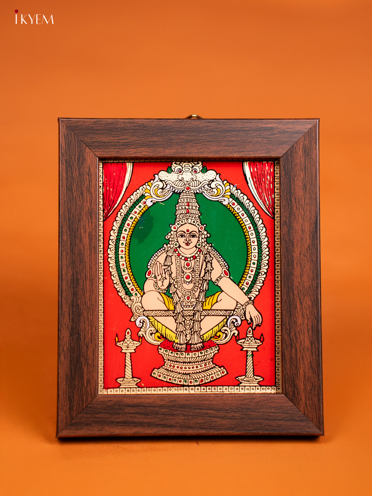 - This Reverse Glass Painted Wall Hanging Frame features a traditional depiction of Lord Iyyappan in vibrant red tones.