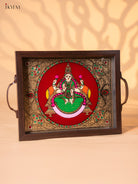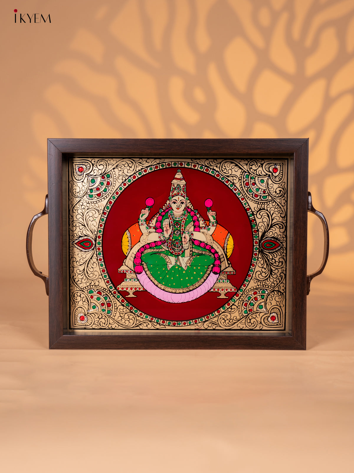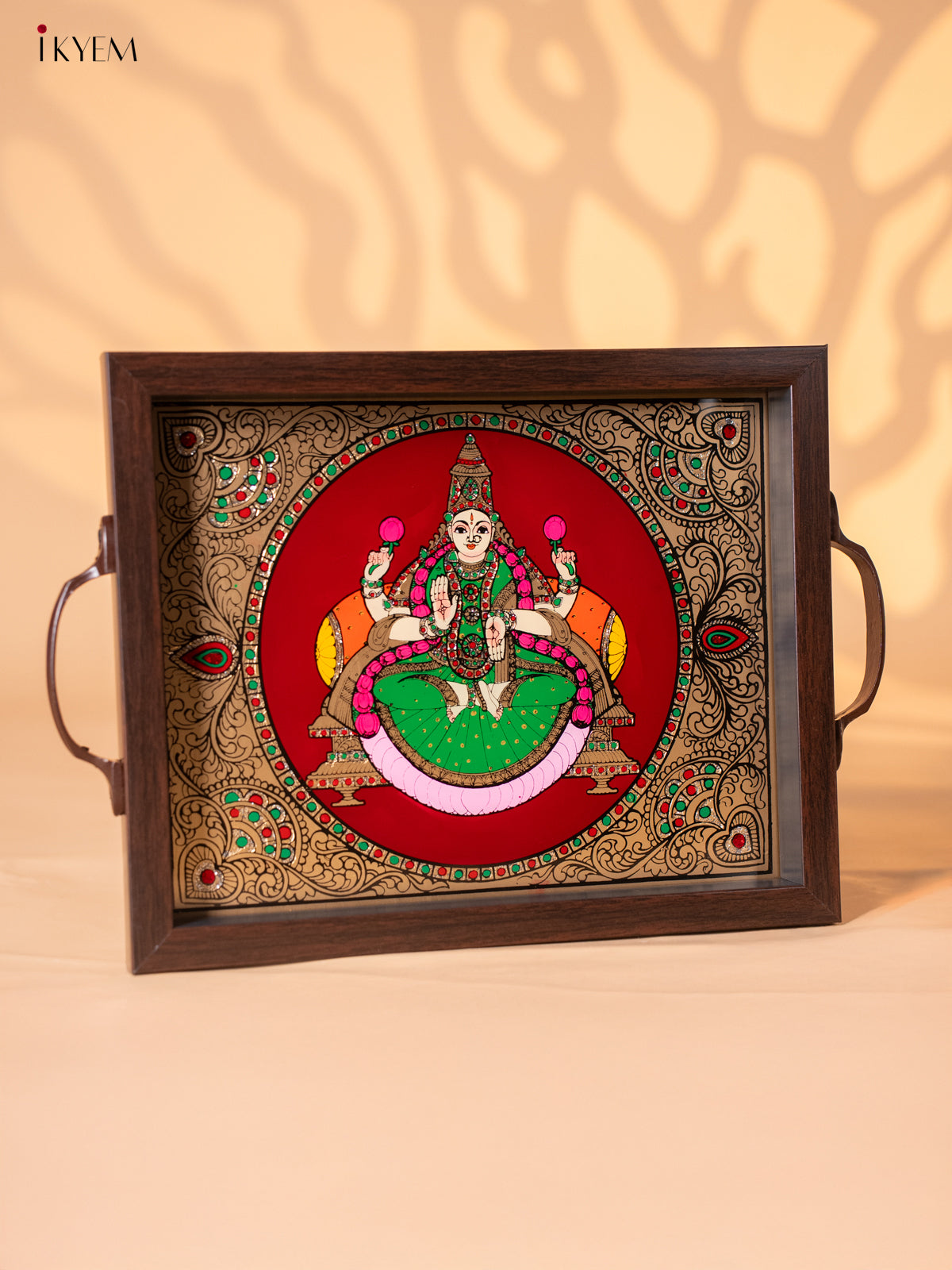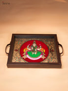 Reverse Glass Painted Tray (11x9) - Lakshmi - Maroon - KI02124
