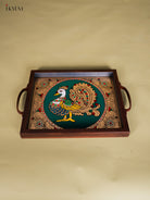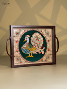 - The Reverse Glass Painted Tray (11x13) highlights the elegant Annapakshi design in a bright green shade.