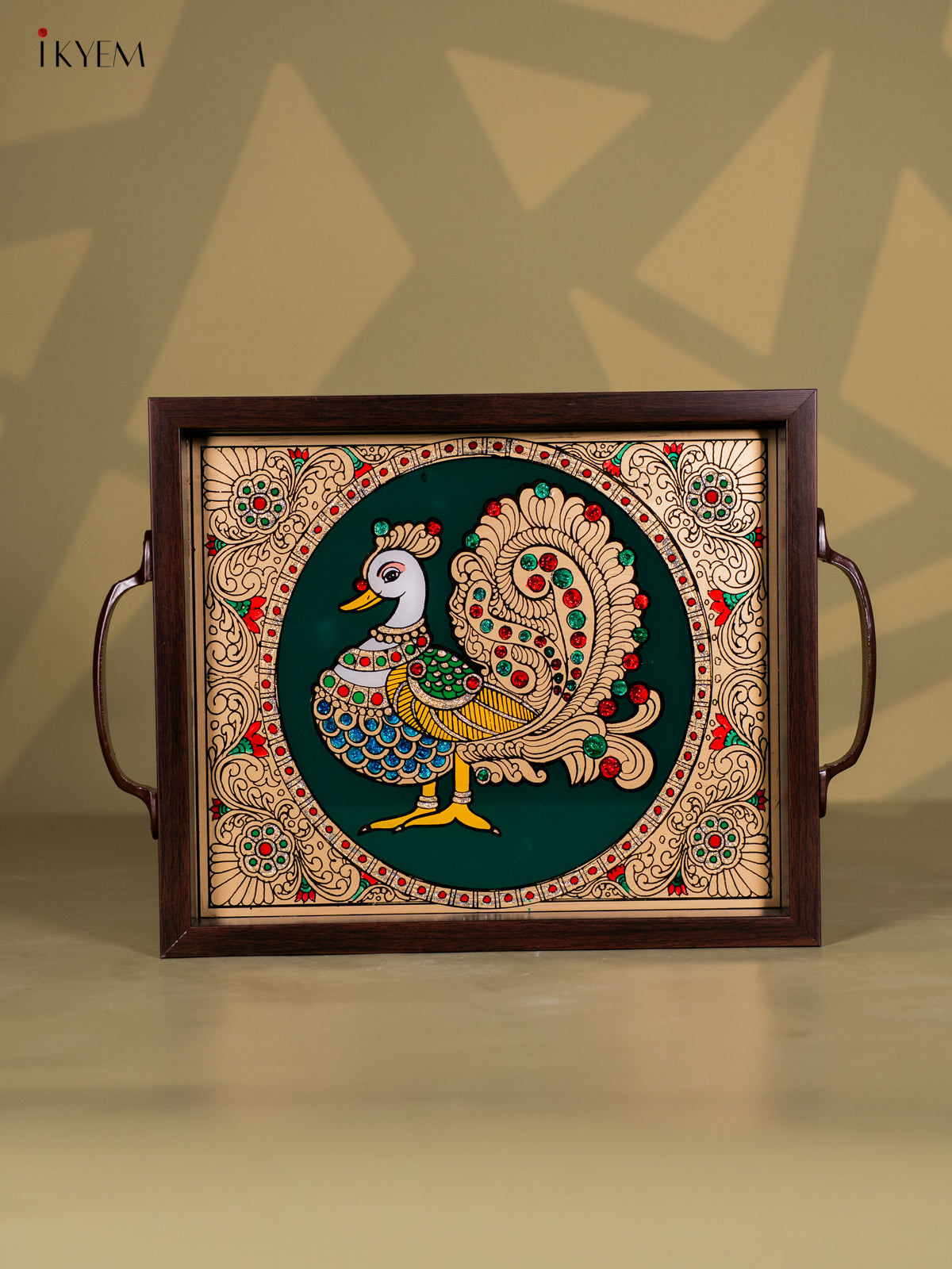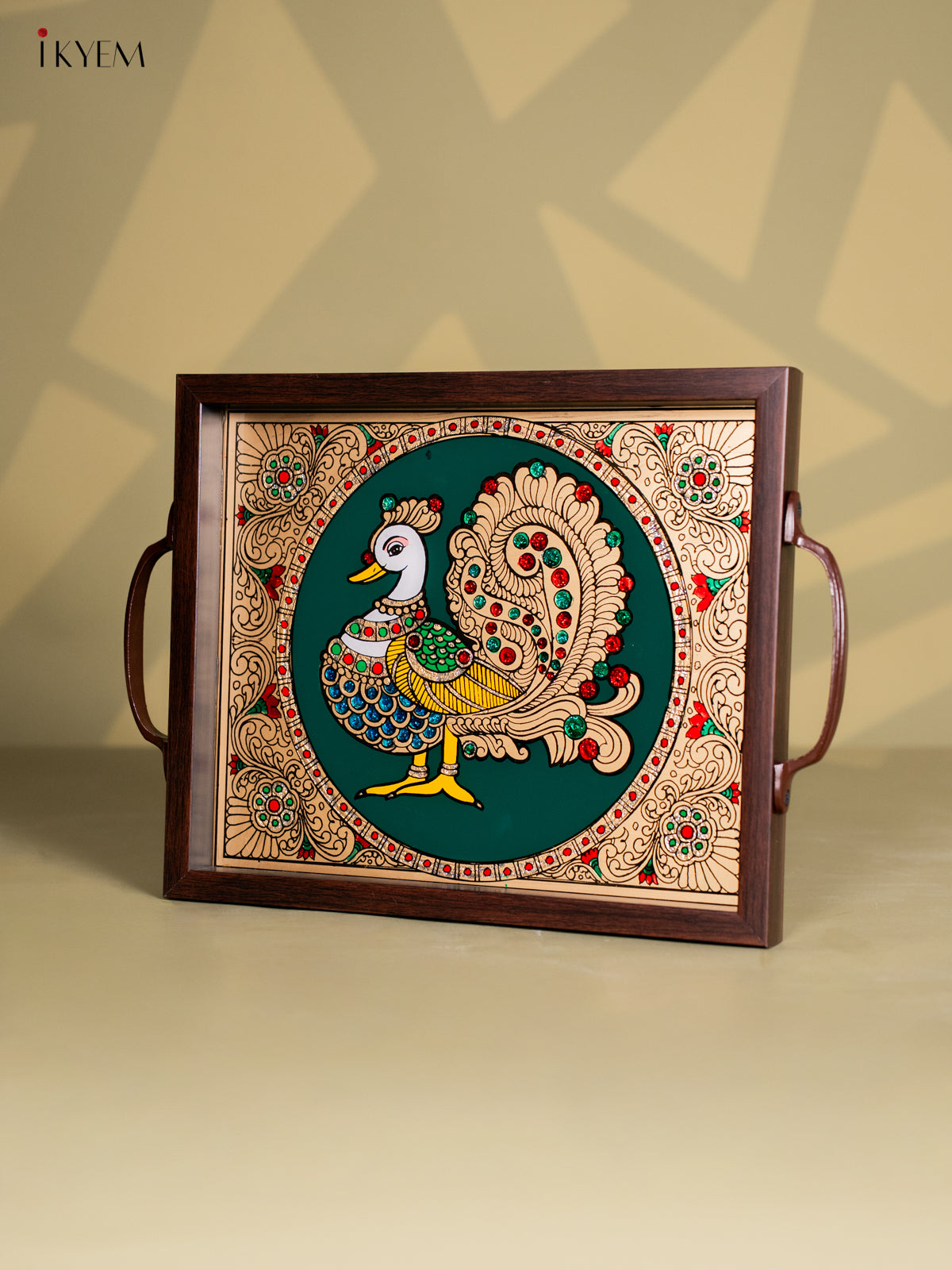 Reverse Glass Painted Tray (11x13) - Annapakshi - Green - KI18123