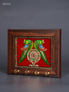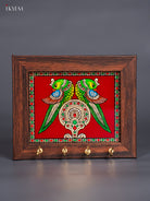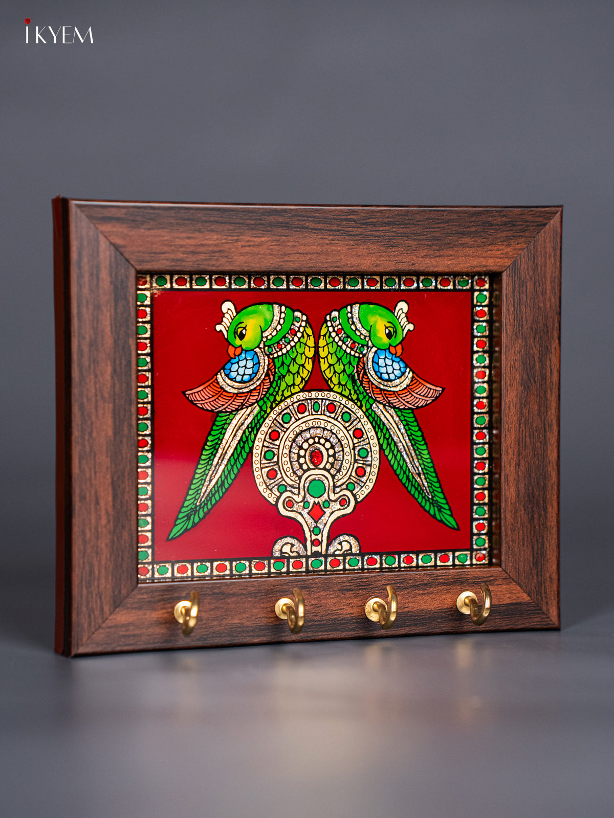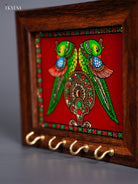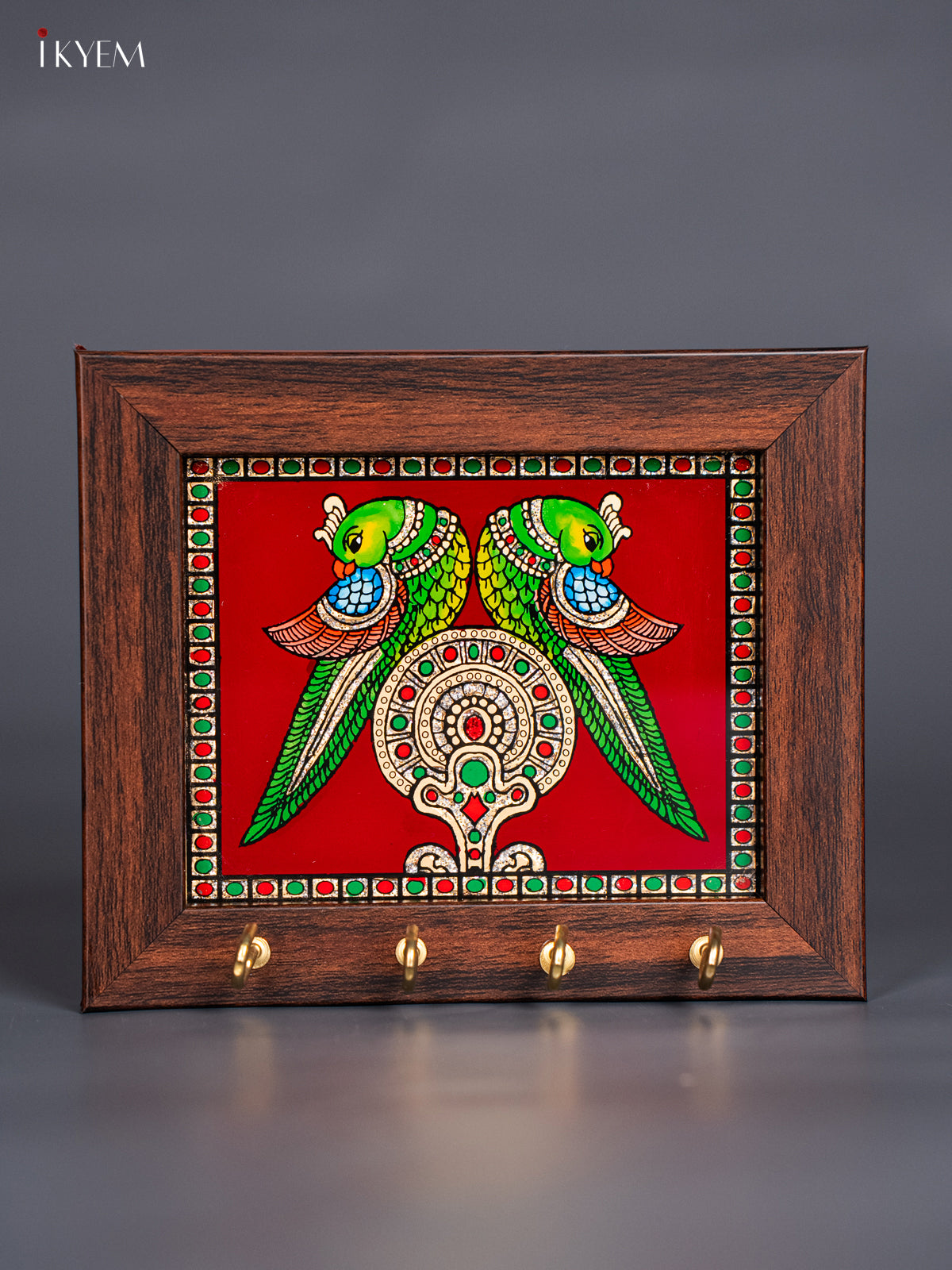 Maroon Reverse Glass Painted Keyhanger Twin Parrots - (5x6) Inches - KJ27134