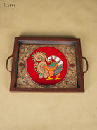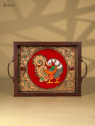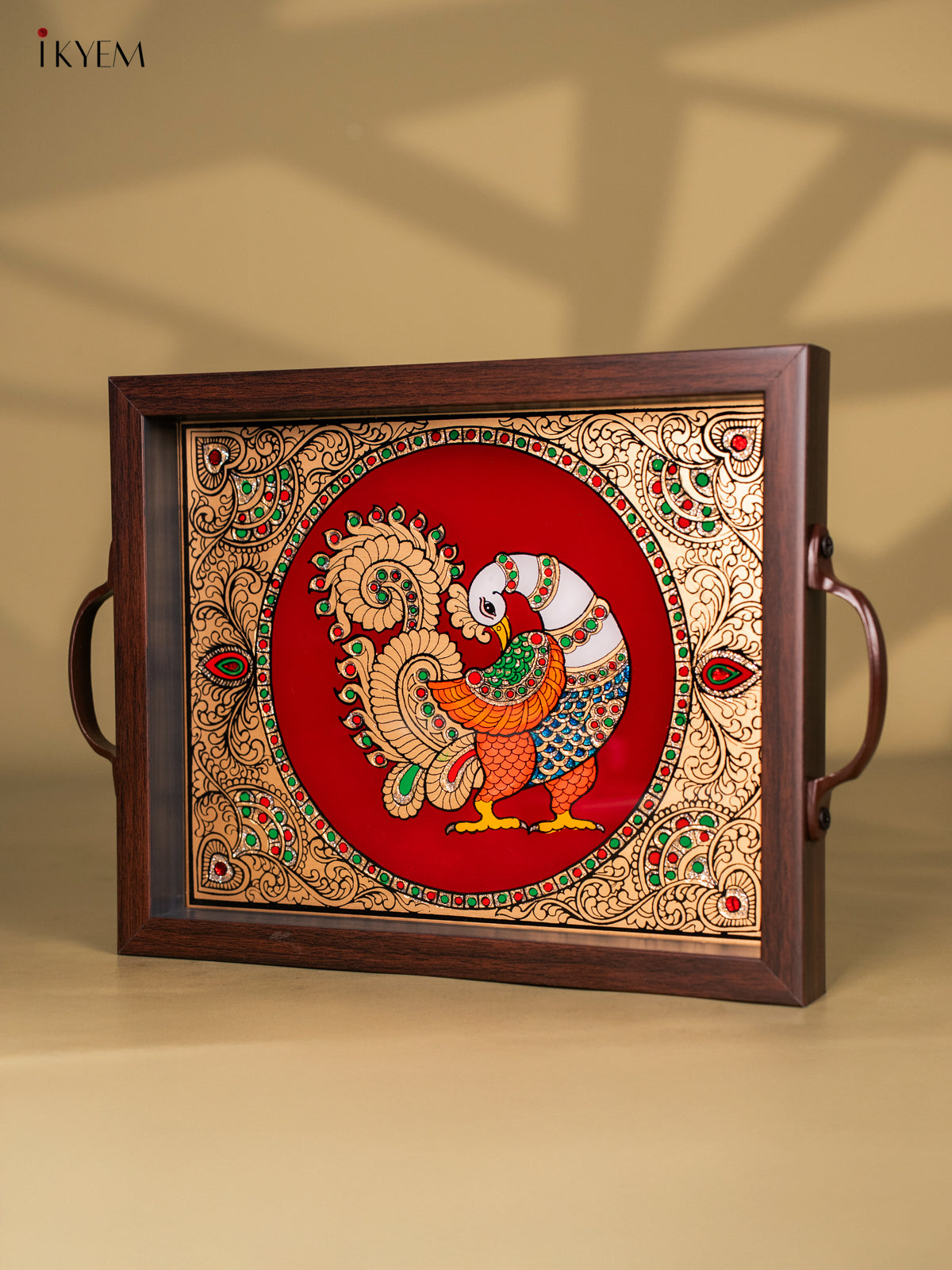 Reverse Glass Painted Tray (11x9) - Peacock - Maroon - KK22118