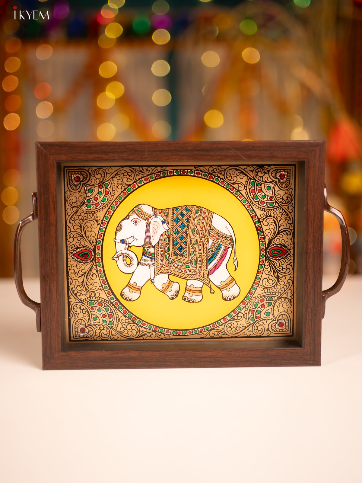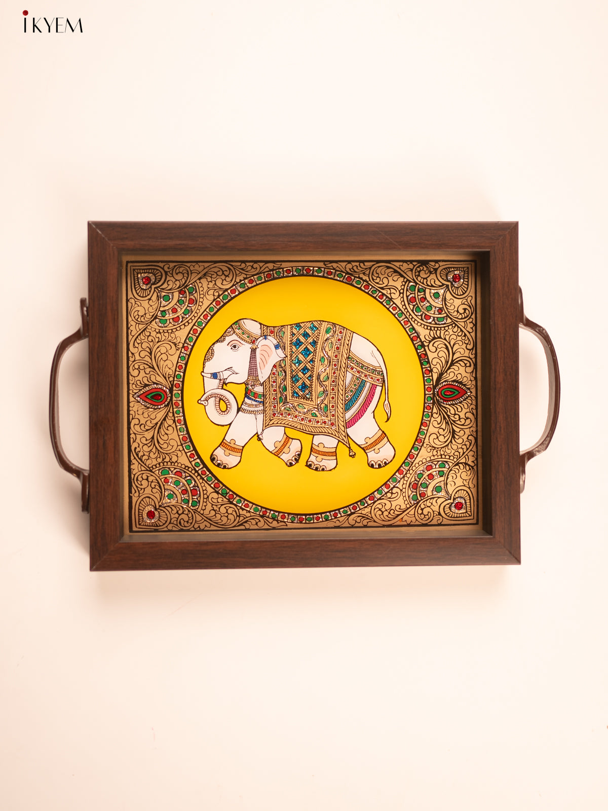Reverse Glass Painted Tray (6x8) - Elephant - KL25111 - Yellow