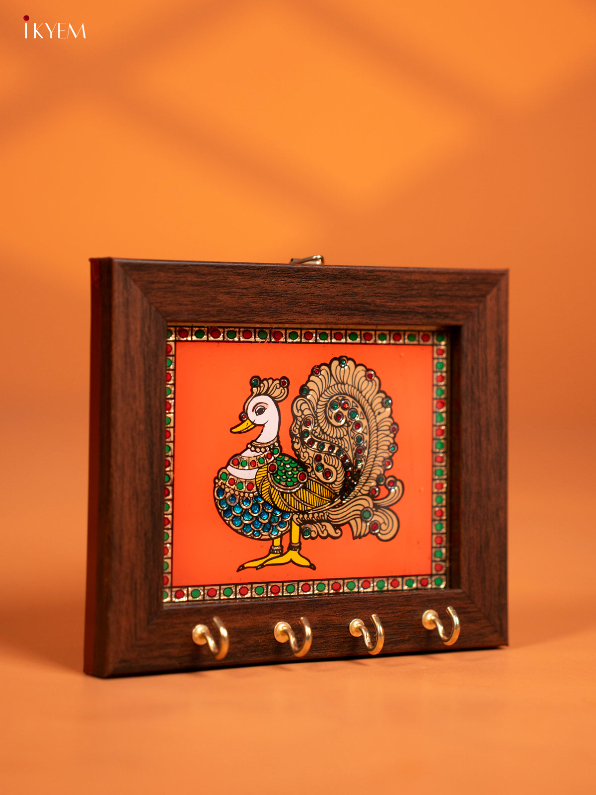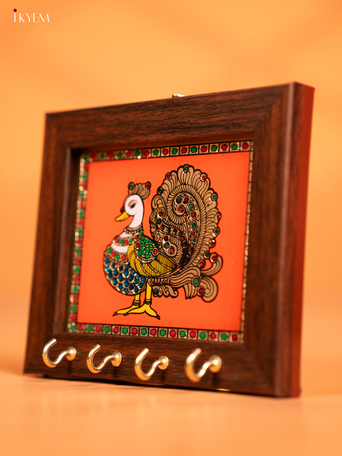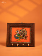 - Expertly handcrafted, this Reverse Glass Painted Key hanger (5x6) features a stunning, intricate Annapakshi design.