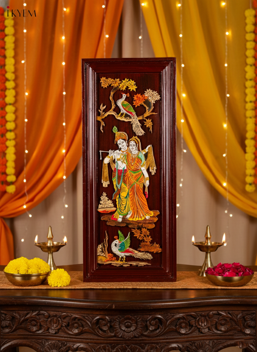 - Introducing the Mysore Rosewood Inlay 3D Panel featuring intricately designed Radha Krishna.
