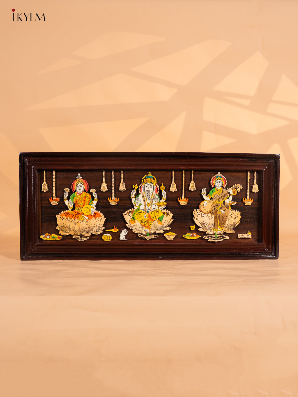 Mysore Rosewood Inlay 3D Panel - Lakshmi Ganesha Saraswathi - KJ31133