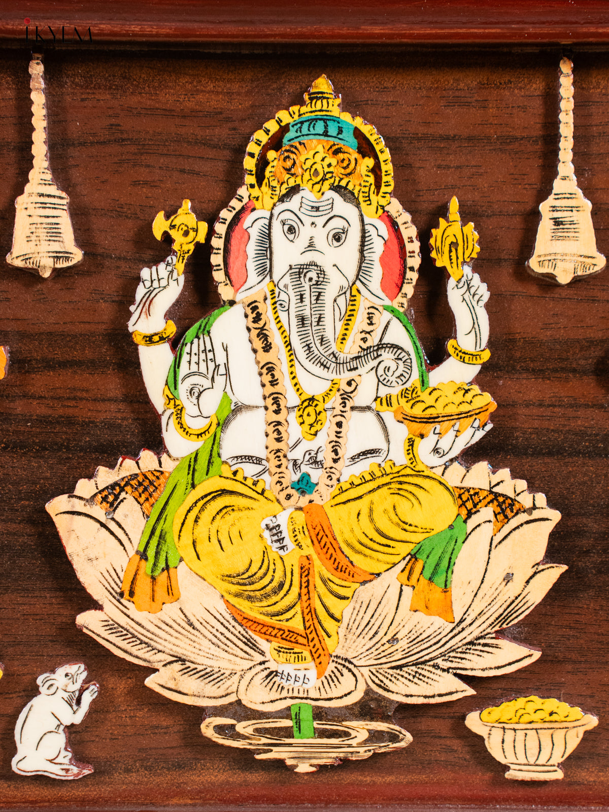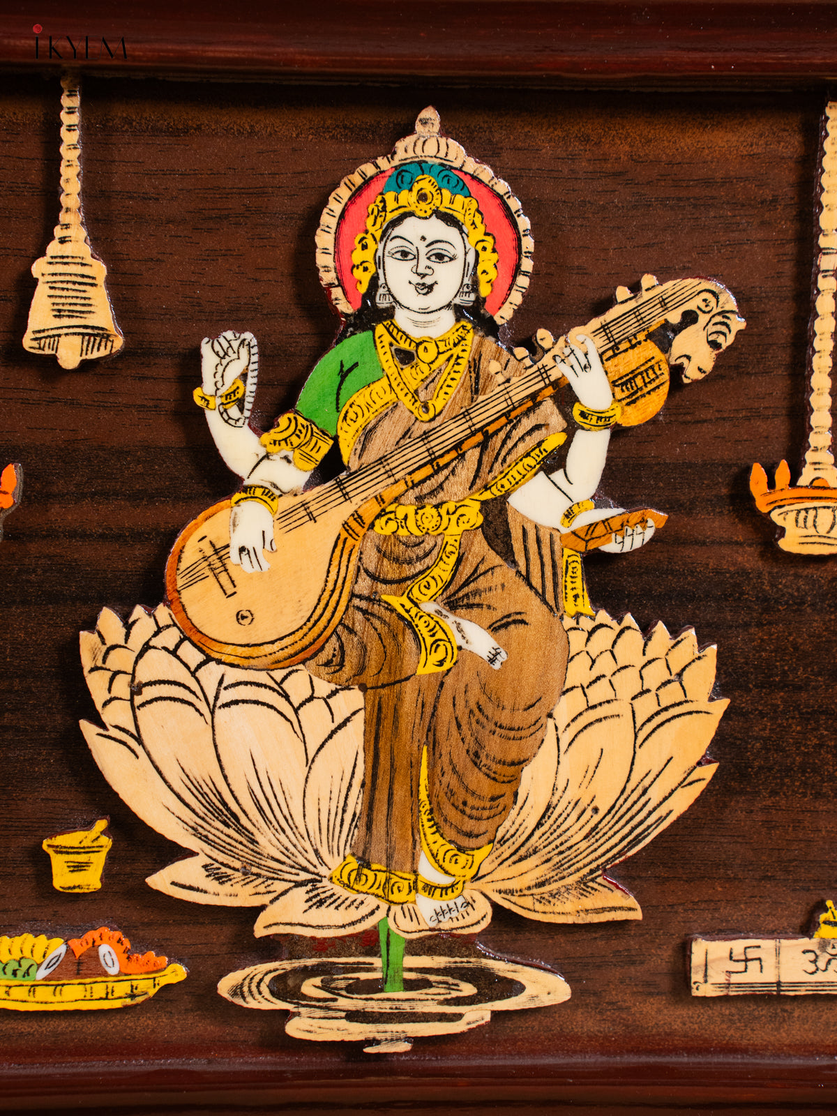 - Lakshmi Ganesha Saraswathi Mysore Rosewood Inlay 3D Panel represents the pinnacle of traditional Indian craftsmanship.