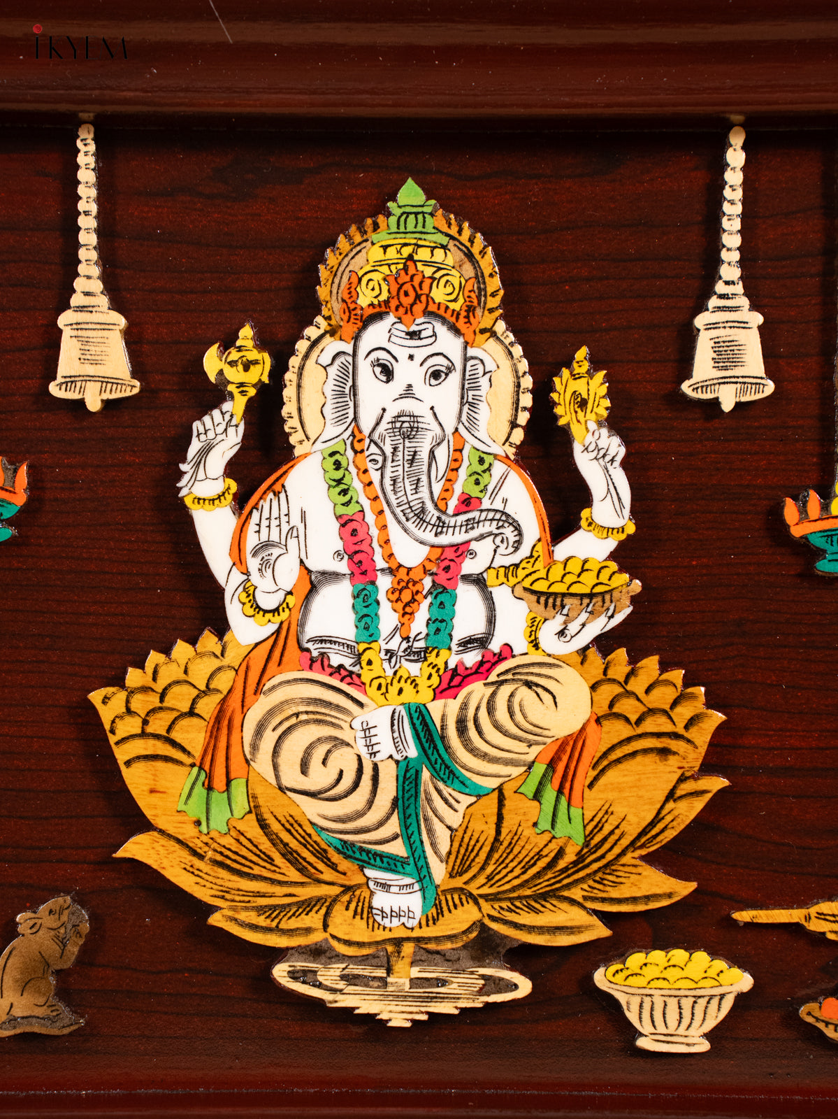 - Lakshmi Ganesha Saraswathi Mysore Rosewood Inlay 3D Panel represents the pinnacle of traditional Indian craftsmanship.
