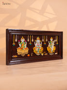 Mysore Rosewood Inlay 3D Panel - Lakshmi Ganesha Saraswathi - KJ31134